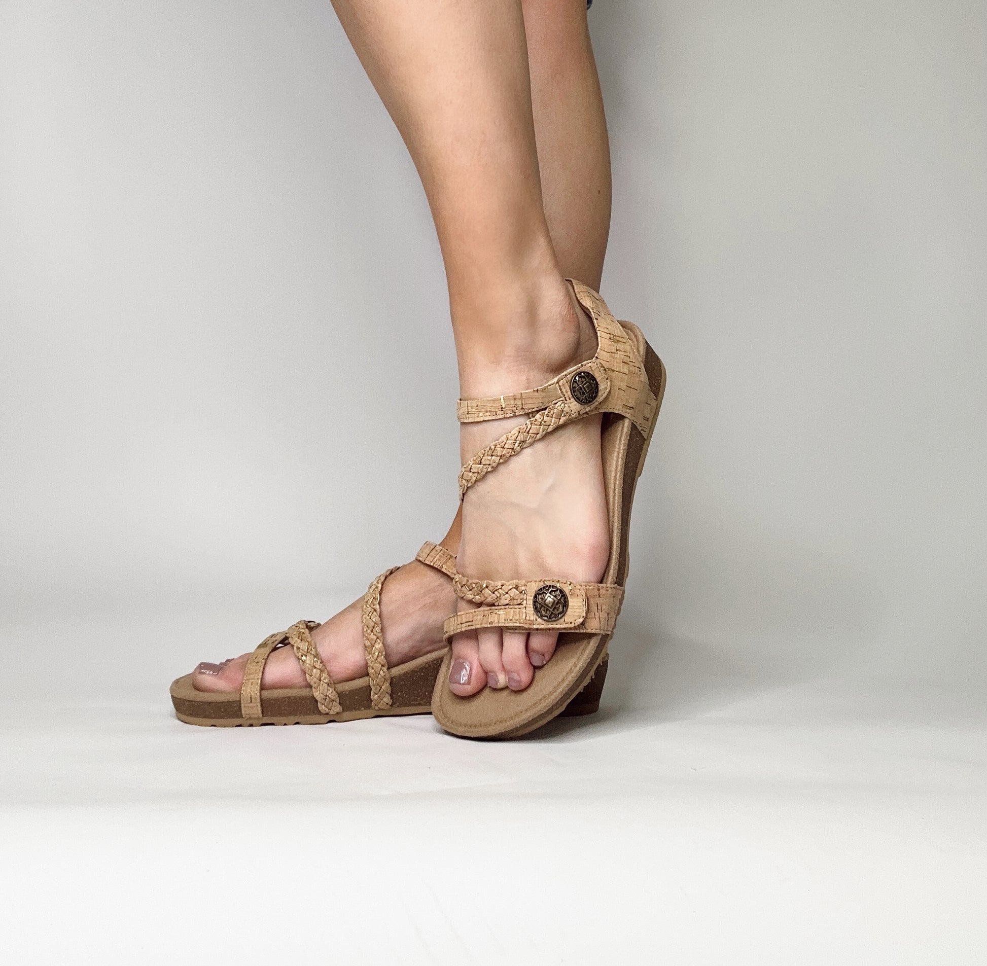 Aetrex #1 best-selling sandal for a reason. The Jillian is constructed with Aetrex Signature Arch Support that is strategically placed to align your body. This fully adjustable sandal features memory foam cushioning, strategically placed straps to help relieve bunion discomfort, a padded heel for extra comfort, and an ultra-light cork midsole to help make it much easier to walk around all day. The signature braided detailing makes the Jillian both comfortable and stylish for all your summer adventures.