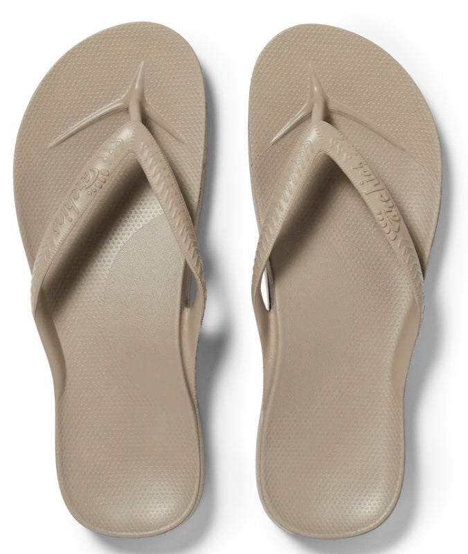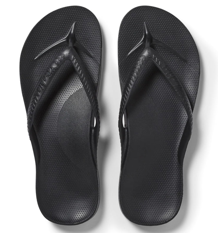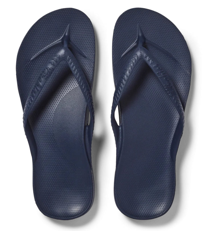 Up to 1 inch of orthotic support encourages optimal foot posture aiding whole body alignment. Perfect for people with Plantar Fasciitis. Our specialized closed cell foam material is formulated to mold to the shape of your foot. Give them a day or two to wear in and you'll be in love with your Archies! Your toes don't have to grip to keep your flip flops on. Walk all day without overusing muscles and tendons in the feet. The strap can also be stretched to suit the width of your foot! Our ultra-strong one-piece design makes Archies Flip Flops extremely durable and less likely to blow out!
