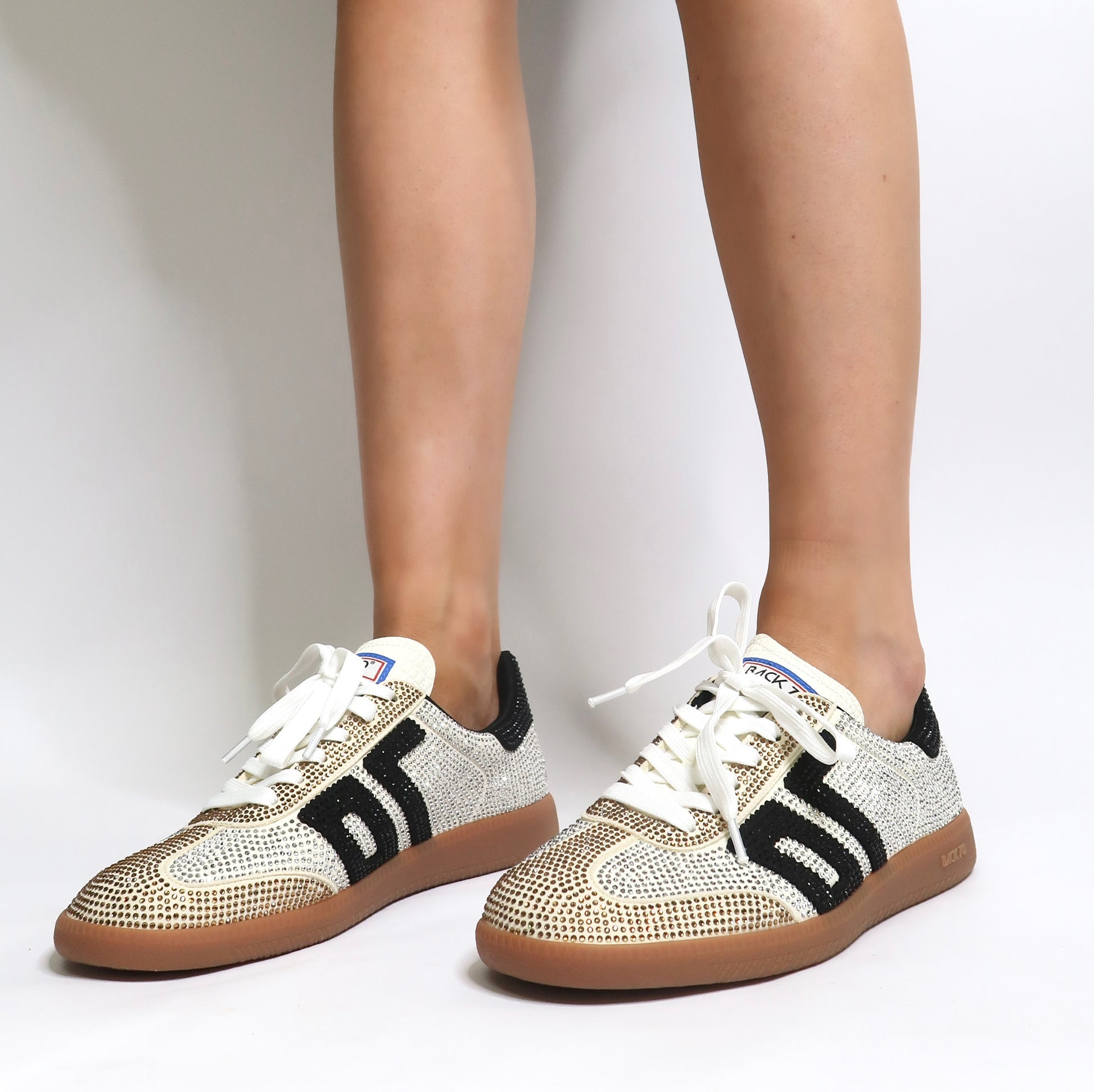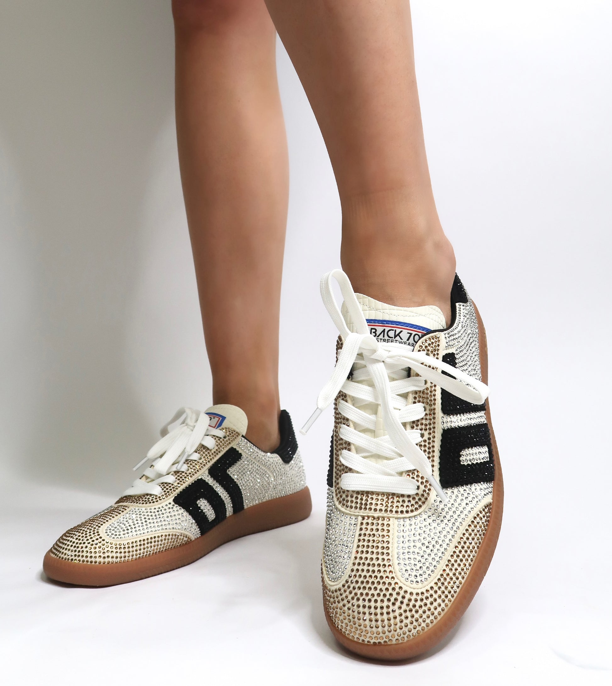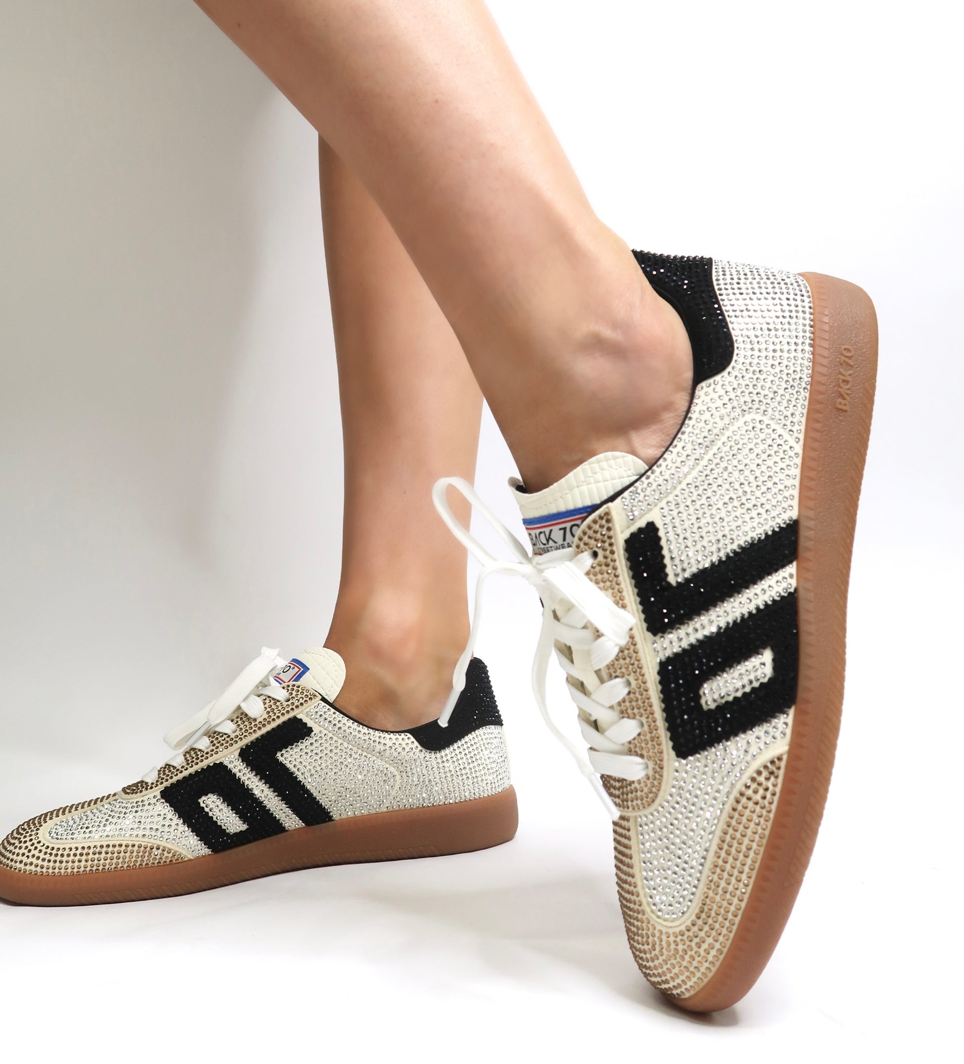 Major bling. These exclusive designer sneakers are encrusted heel to toe in rhinestones. You know who you are. You know you need these. Wear these limited edition Back 70 sneakers to your next sports game, shopping trip, or coffee date. Outfit done.