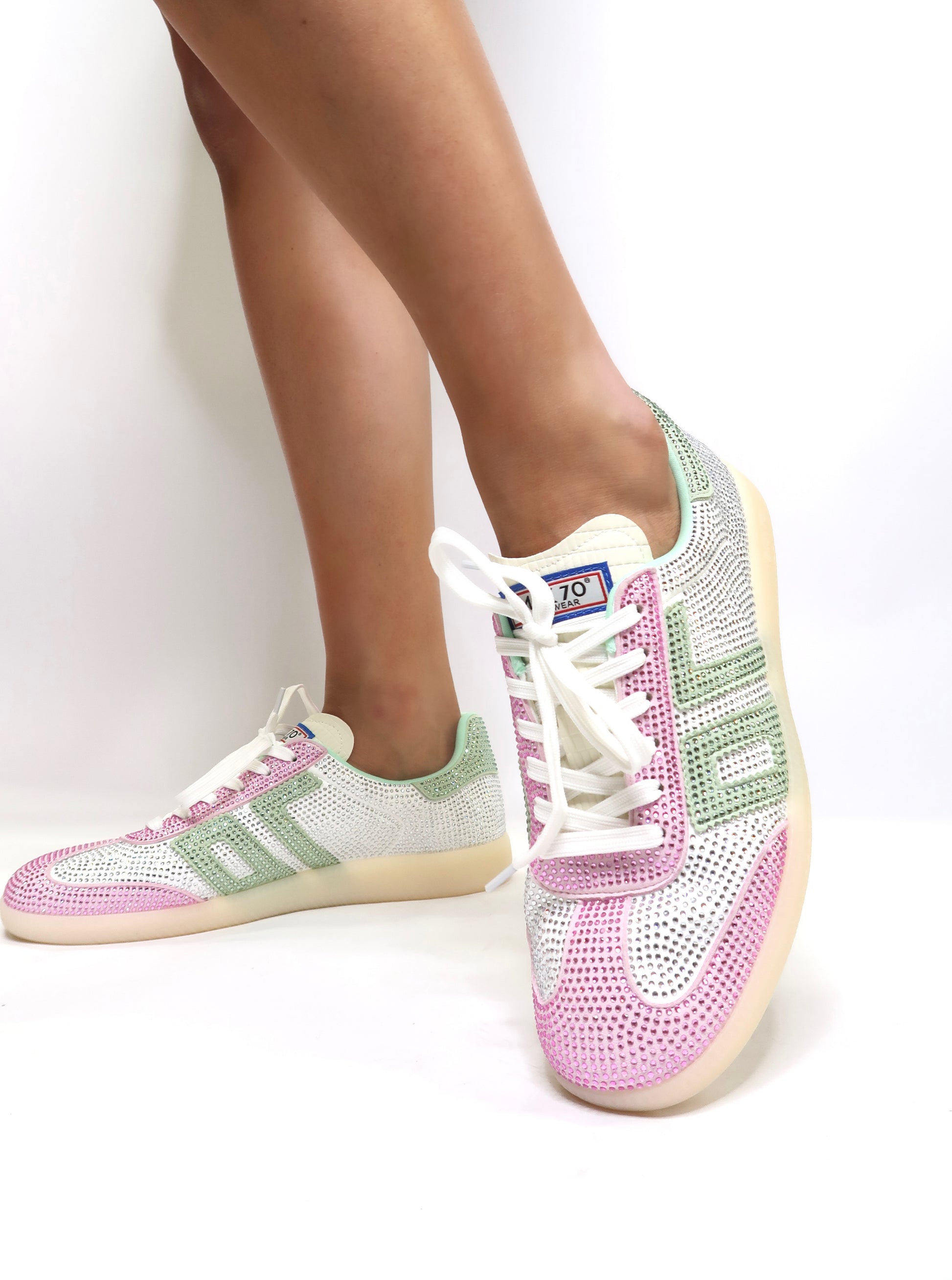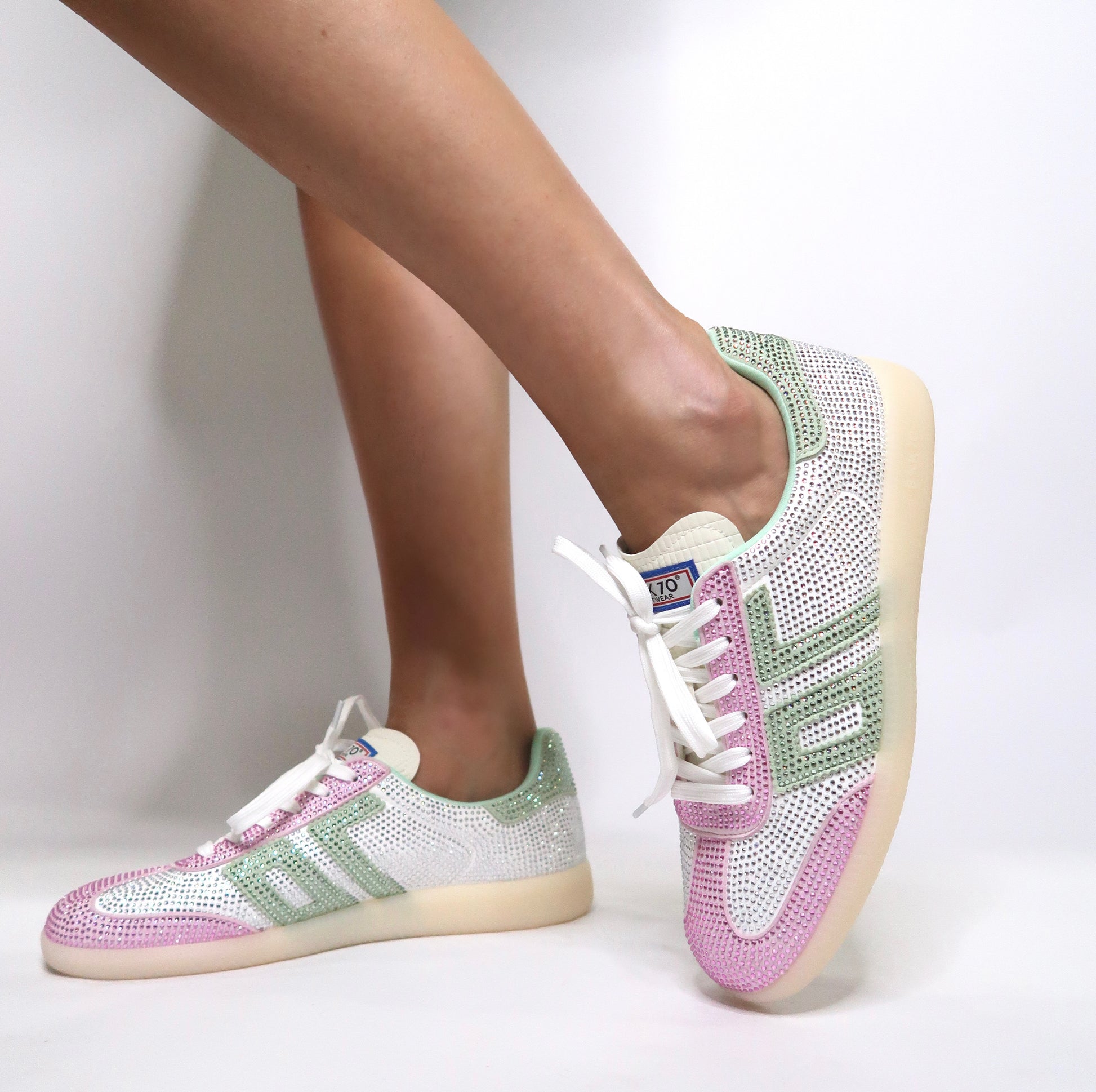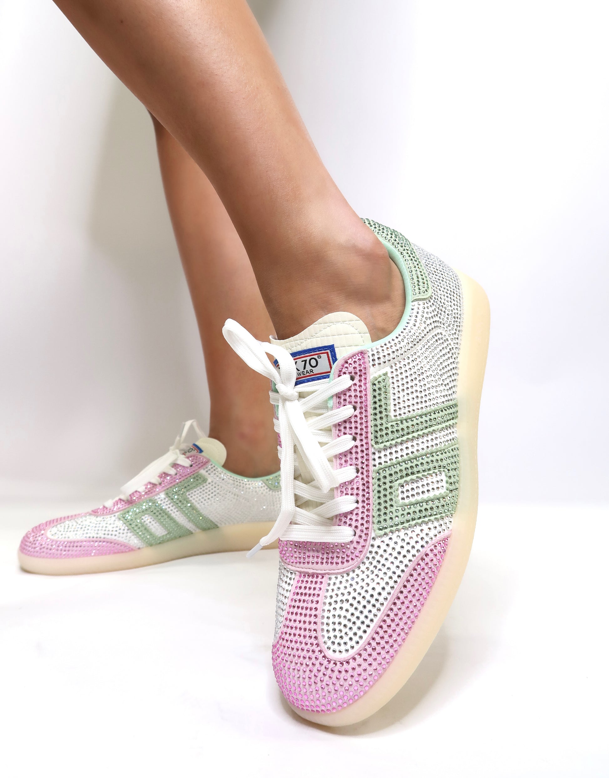 Major bling. These exclusive designer sneakers are encrusted heel to toe in rhinestones. You know who you are. You know you need these. Wear these limited edition Back 70 sneakers to your next sports game, shopping trip, or coffee date. Outfit done.