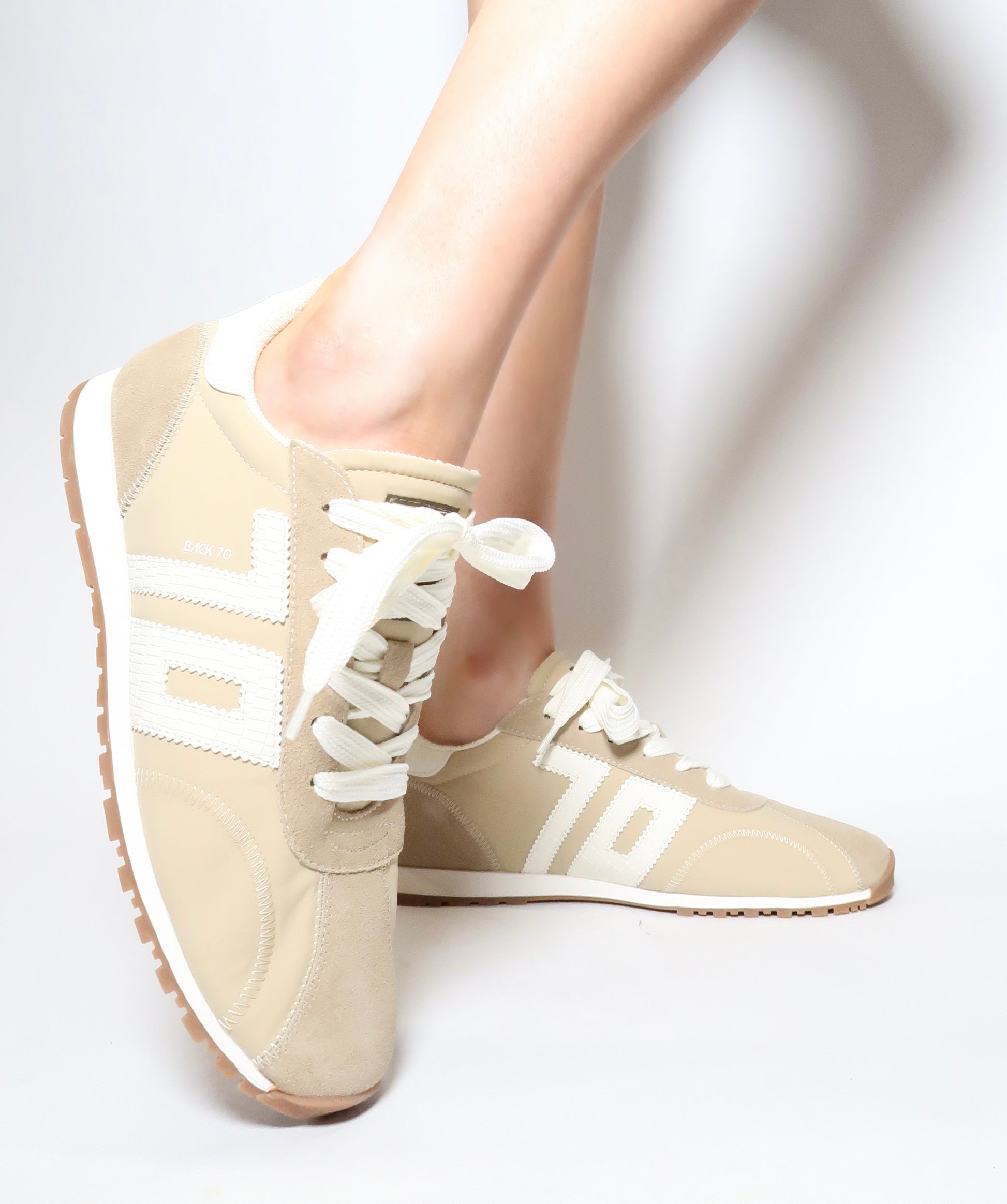 Looking for something fresh? This running-inspired fashion sneaker redefines functional fashion with sporty materials and bold motifs that blend highly technical design with a futuristic aesthetic. Hand crafted with precision and finished with Back 70's iconic "70" emblem and signature logo patch, this sneaker is the new "it" shoe for street style. Mix sport with luxury by pairing this style with track suits, airy layers, stretch skirts and deconstructed blazers for a style that's unexpected, and on the fast track for an immersive experience. Includes an essential woven cotton lace, as well as a contrasting fashion cord to unlock your creative inspirations.