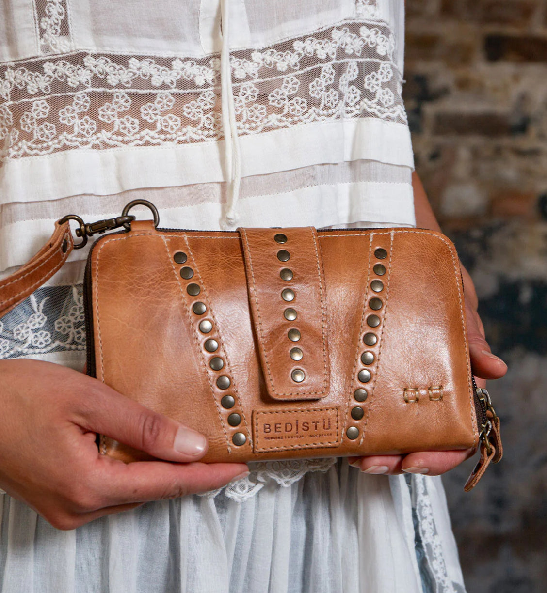Flee is the wallet that does it all. With a secure zip closure and an additional magnetic strap, your essentials stay safe and organized. Featuring metal stud details and a removable crossbody strap, Flee effortlessly transforms from a sleek wallet into a hands-free crossbody bag. Perfect for those on the go.