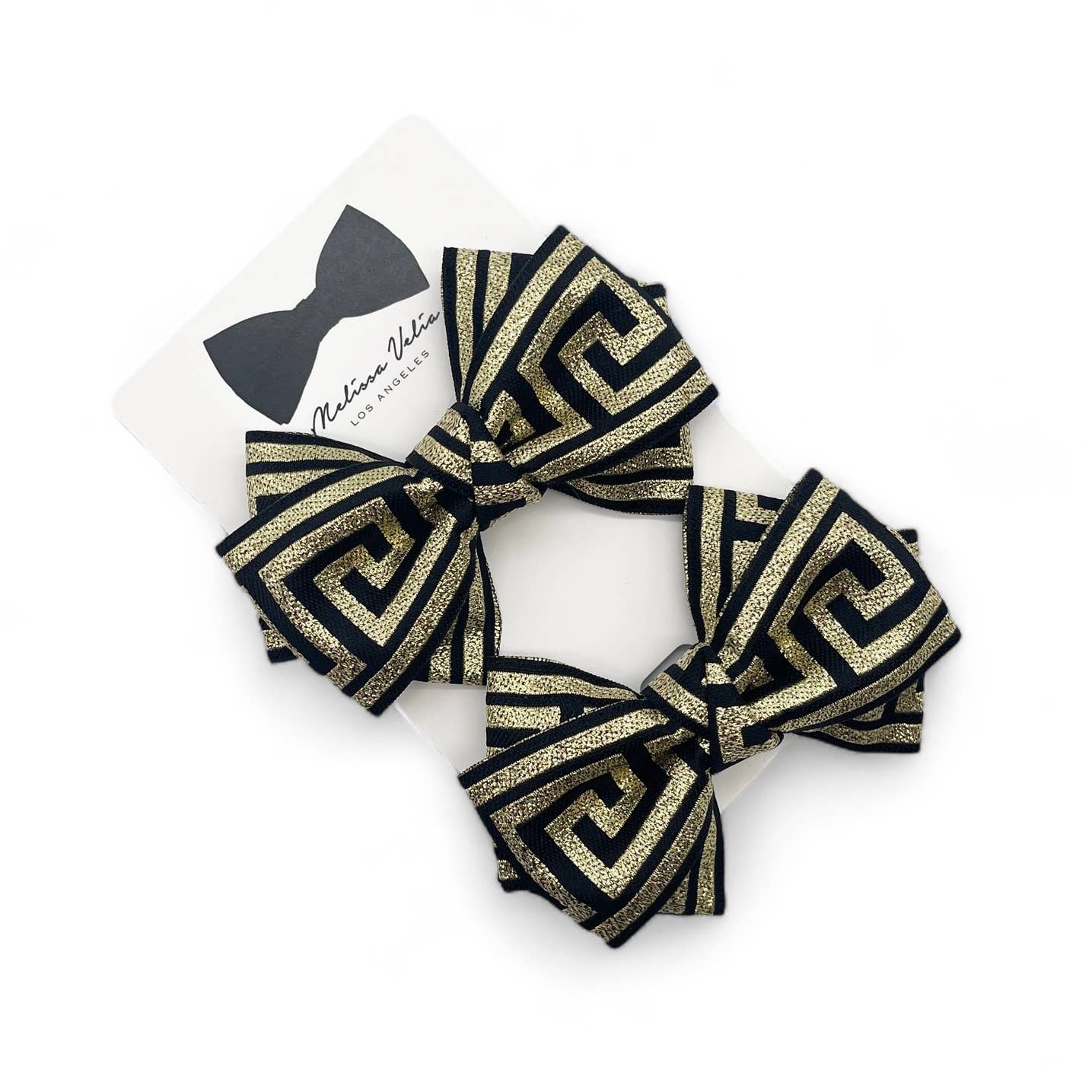 These black with metallic gold Greek key, bow shoe clips can be attached to almost any shoe. They are made with a small metal clip that is padded with felt on the top side. They not only look fabulous but they are comfortable to wear too. Listing is for one pair. Shoes not included.