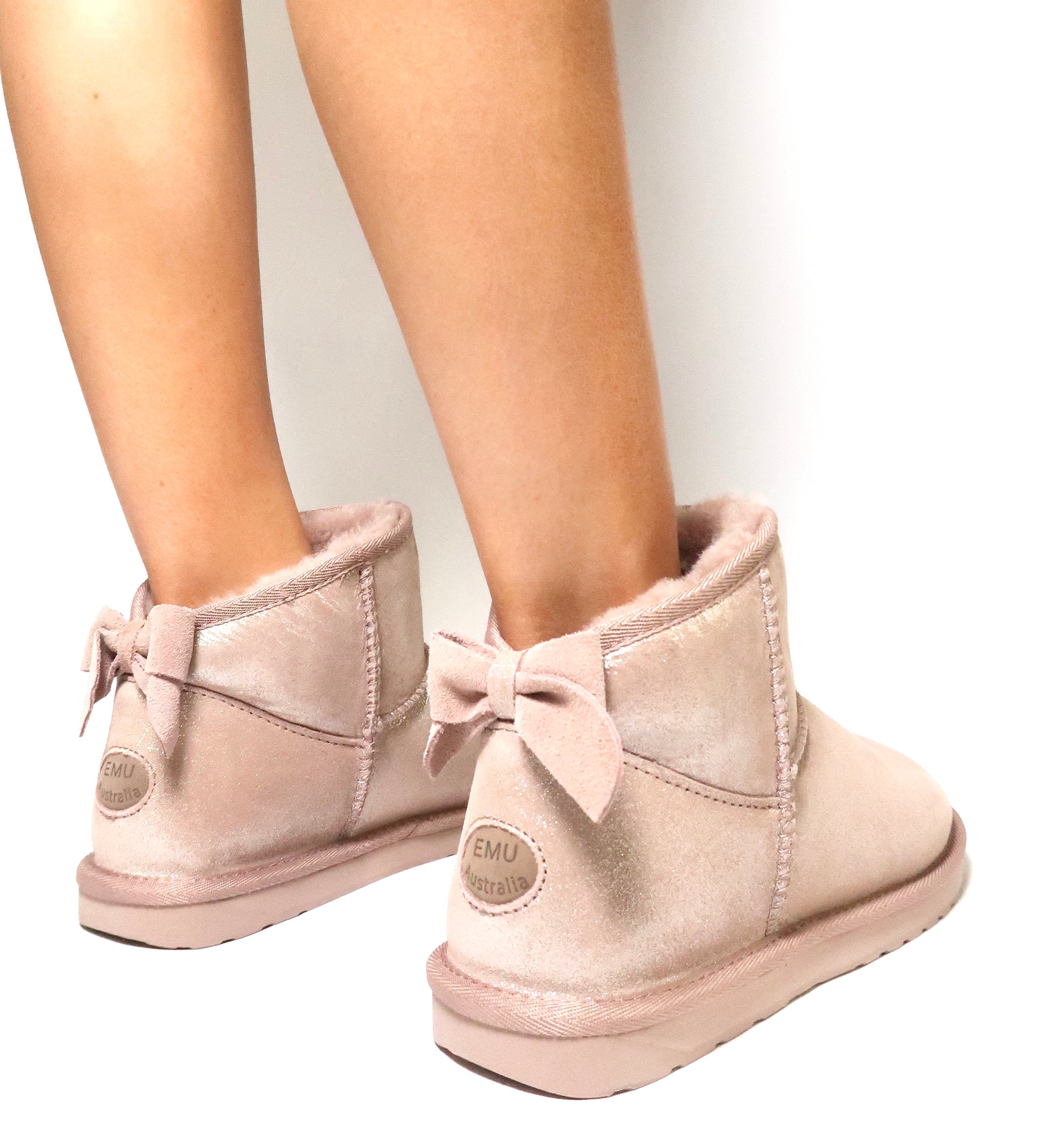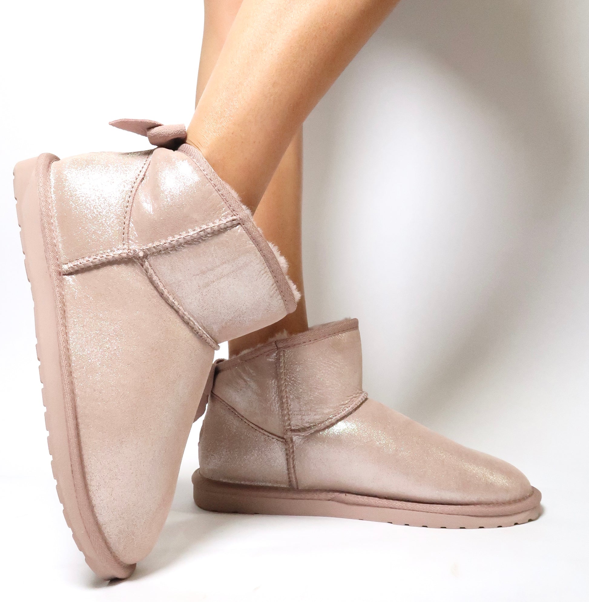 Cute, cosy and a little bit glam. This glossy micro boot brings together soft sheepskin, a sleek silhouette and just the right amount of shine.