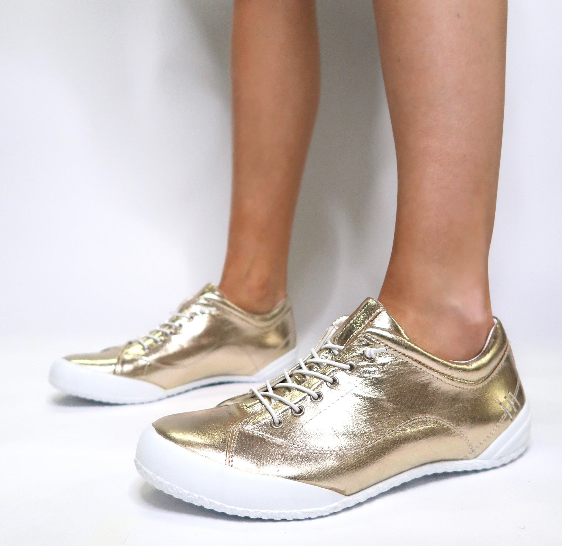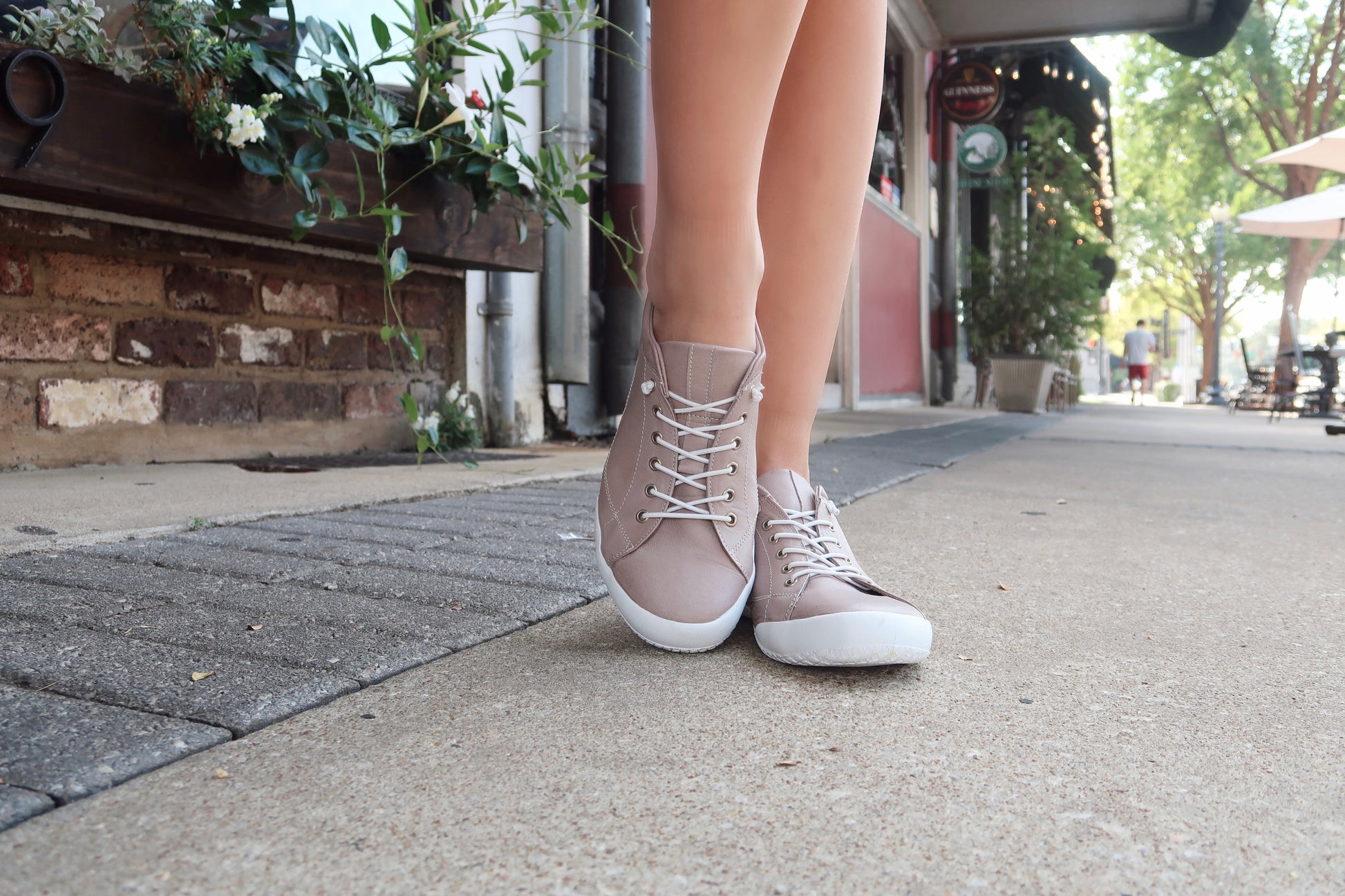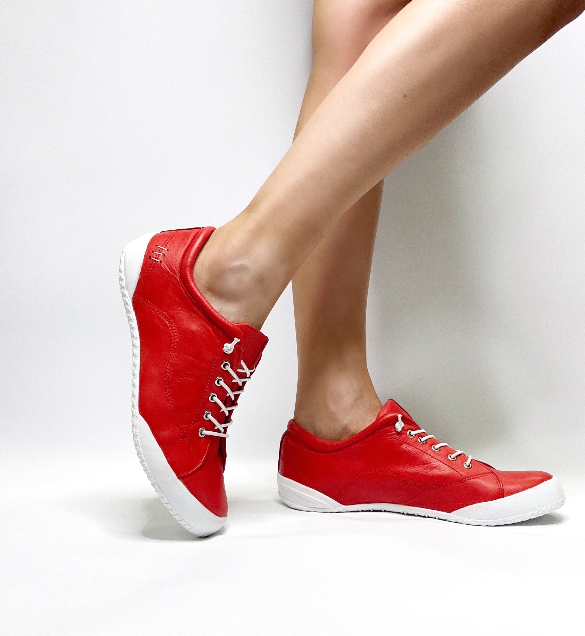 The Tessa sneaker from Gelato is a soft leather sneaker that will pair perfectly with all your spring and summer looks. The sneakers come laced with a round elastic bungee lace, but you are also provided with a set of color coordinated flat laces in the box! The shoe is constructed with a full leather upper and lining, with a rubber sole.