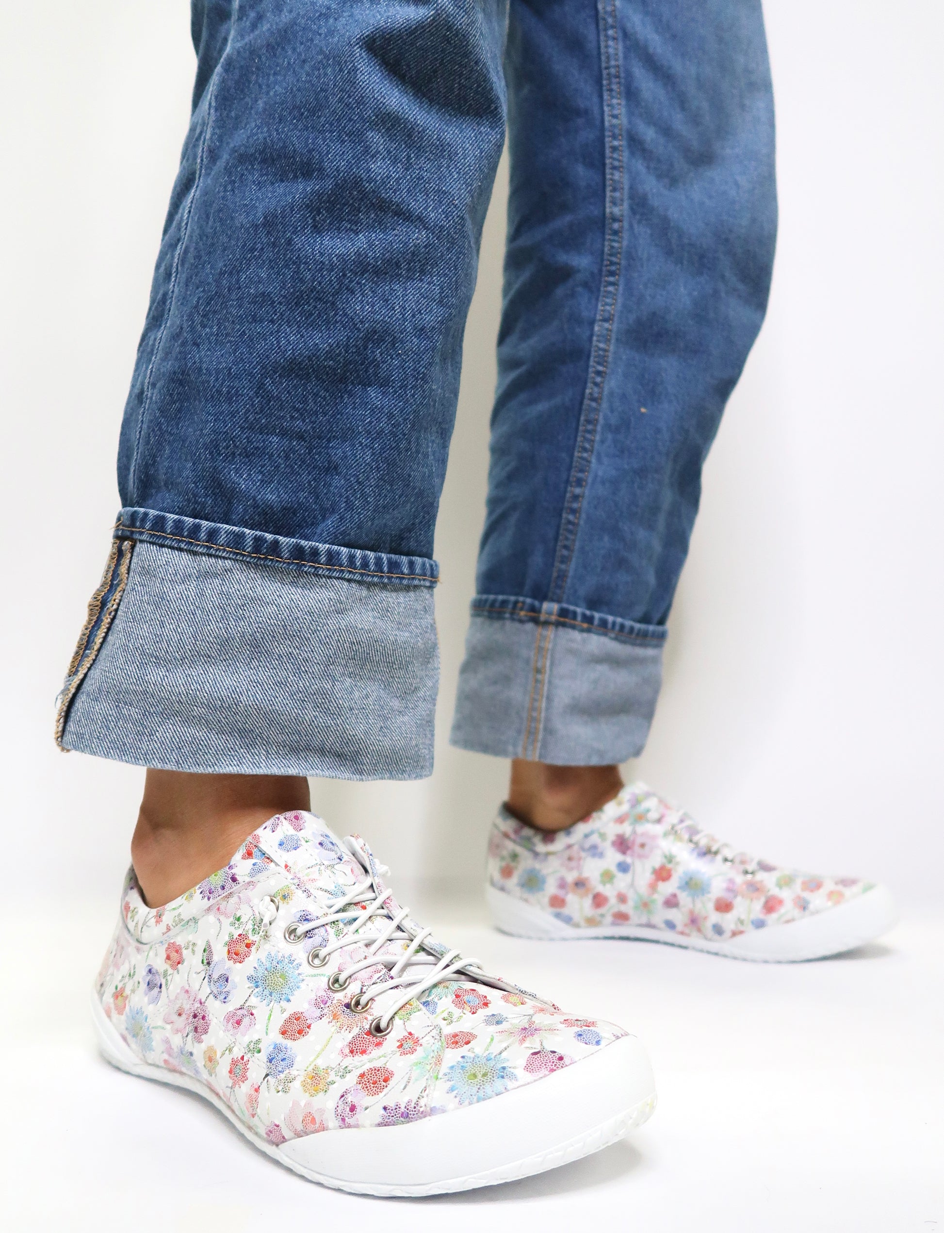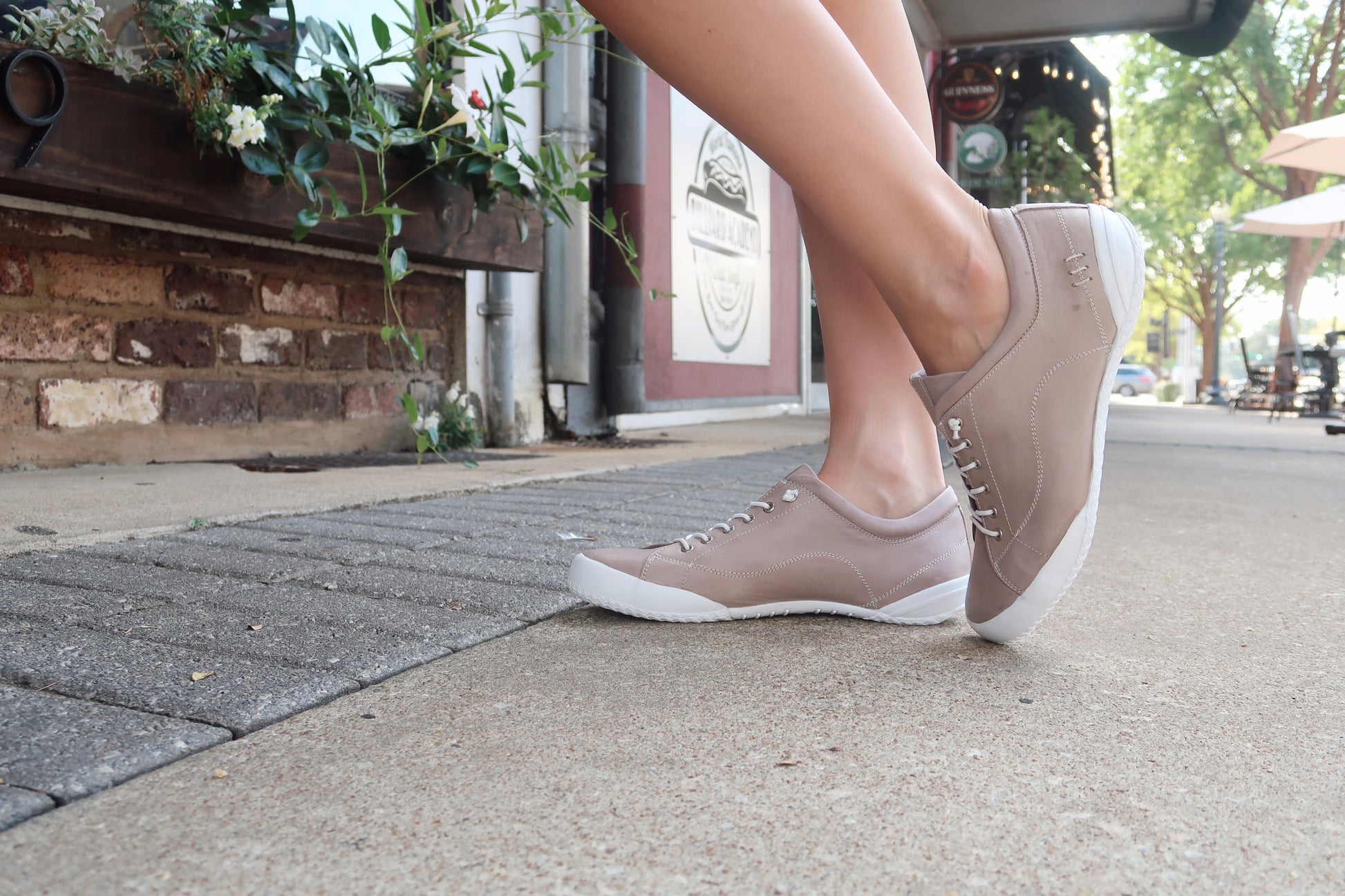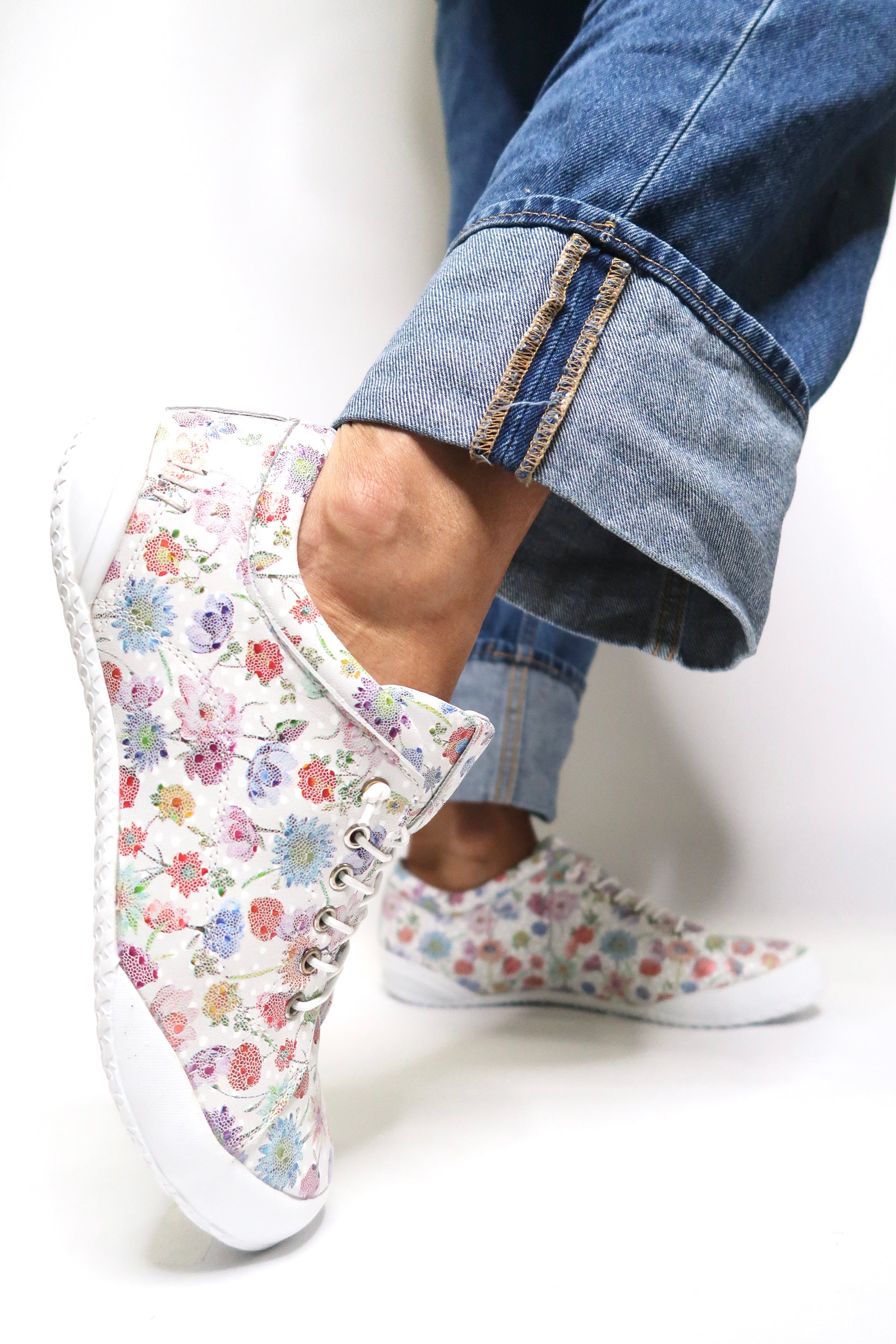 The Tessa sneaker from Gelato is a soft leather sneaker that will pair perfectly with all your spring and summer looks. The sneakers come laced with a round elastic bungee lace, but you are also provided with a set of color coordinated flat laces in the box! The shoe is constructed with a full leather upper and lining, with a rubber sole.