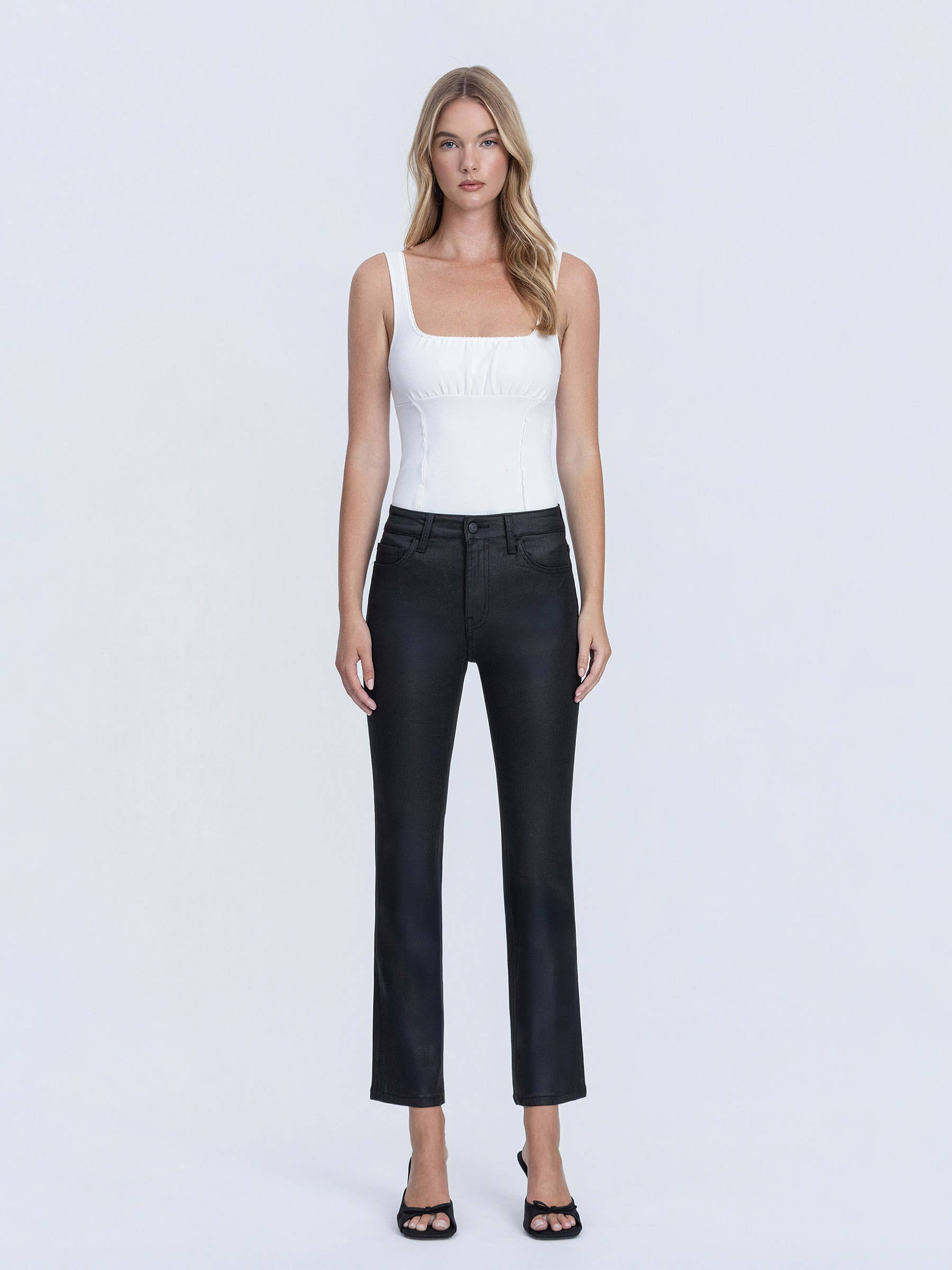 VERVET BLUE BY FLYING MONKEY- High Rise Coated Slim Straight Jeans