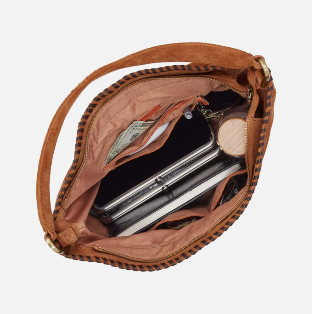 Our newest take on the classic hobo shape, now in supple suede leather with a hand stitched design. You'll want to take the Harley Hobo with you everywhere you go.