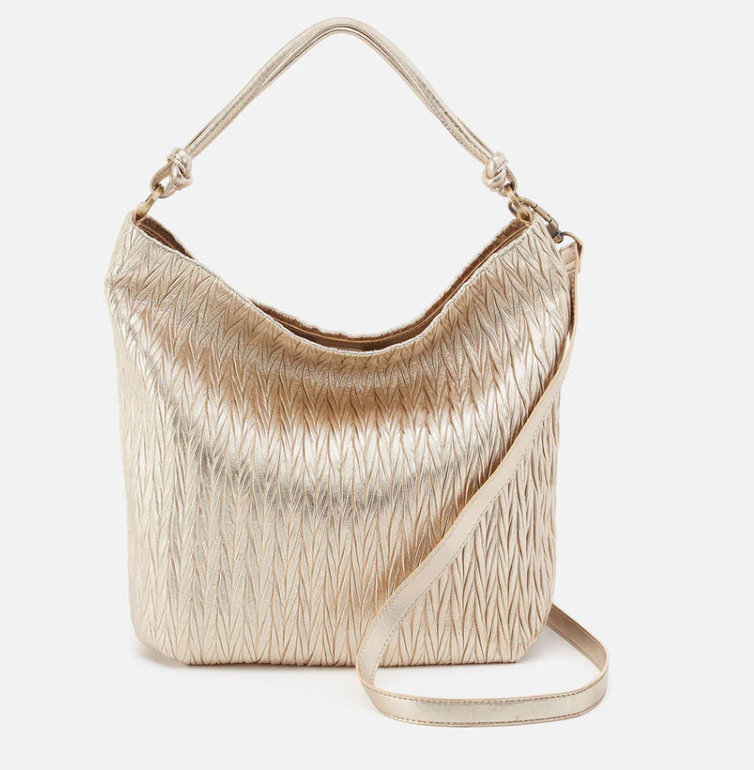 This modern hobo brings together a smooth new leather, knotted details and a sleek look. Crafted in Soft Pebbled Leather.
