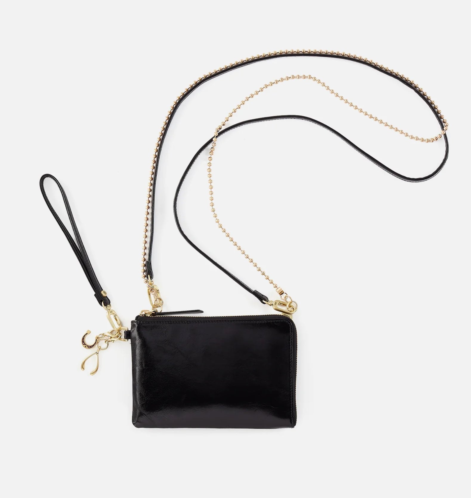 - Also Includes: Leather Crossbody Strap, Gold Ball Chain Strap, Leather Wristlet Strap, and Wishbone Charm
