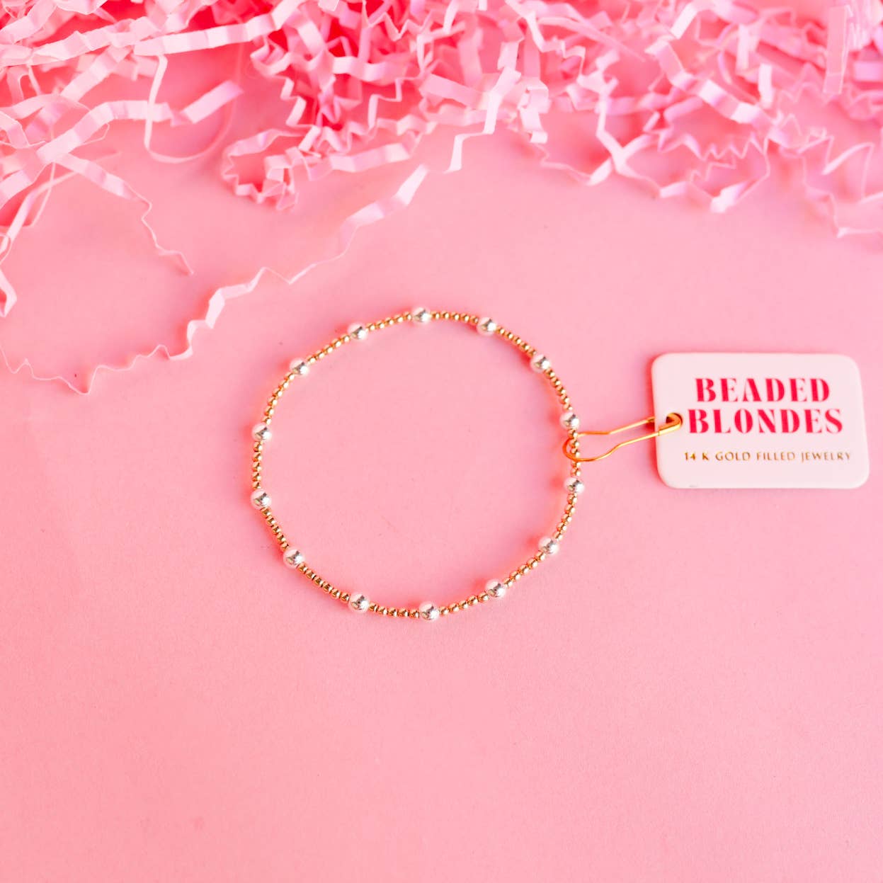 Beaded Blondes june bracelet made with 2mm gold + 4mm silver beads.