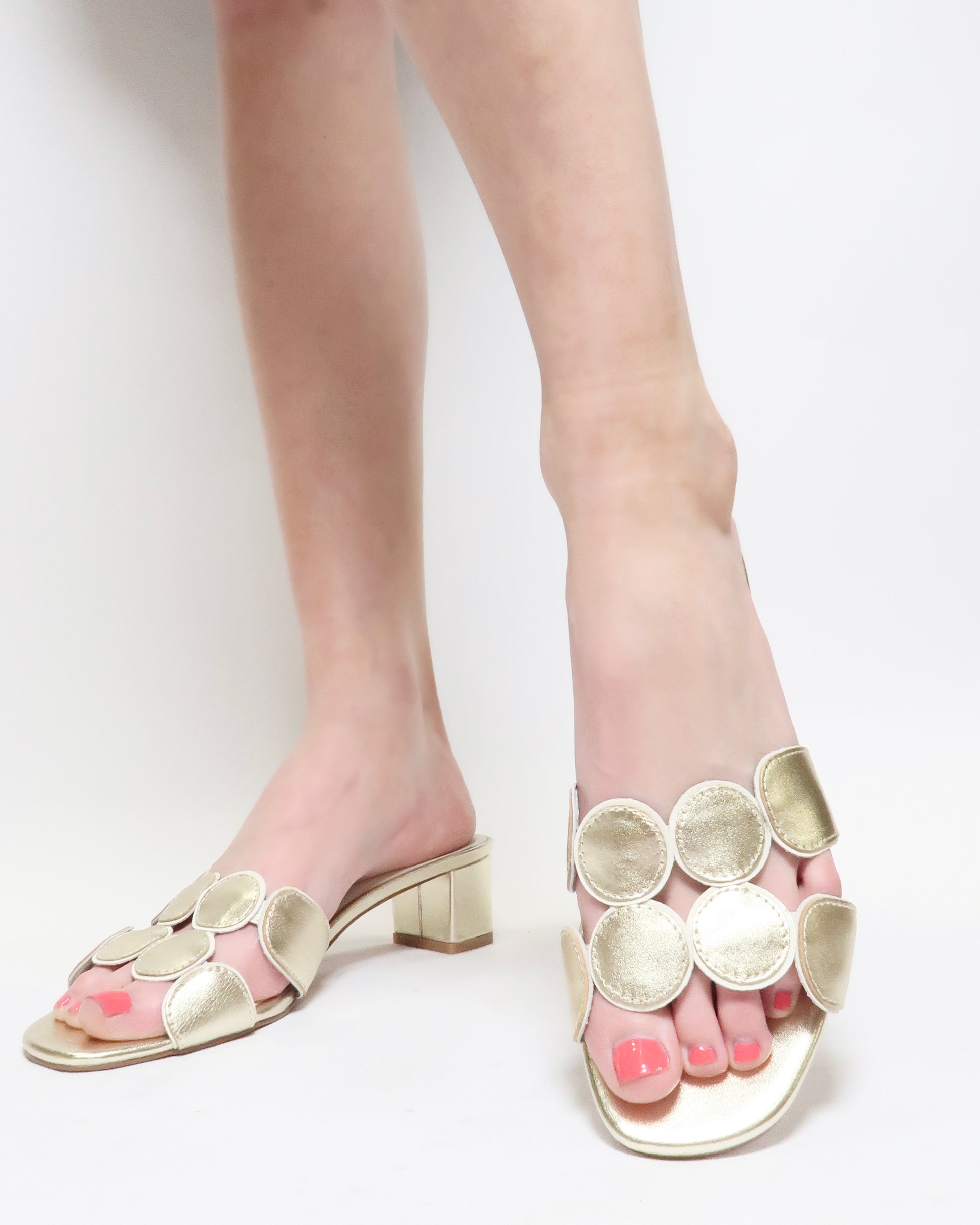 Beautiful slide with circle detail. Low Heel.