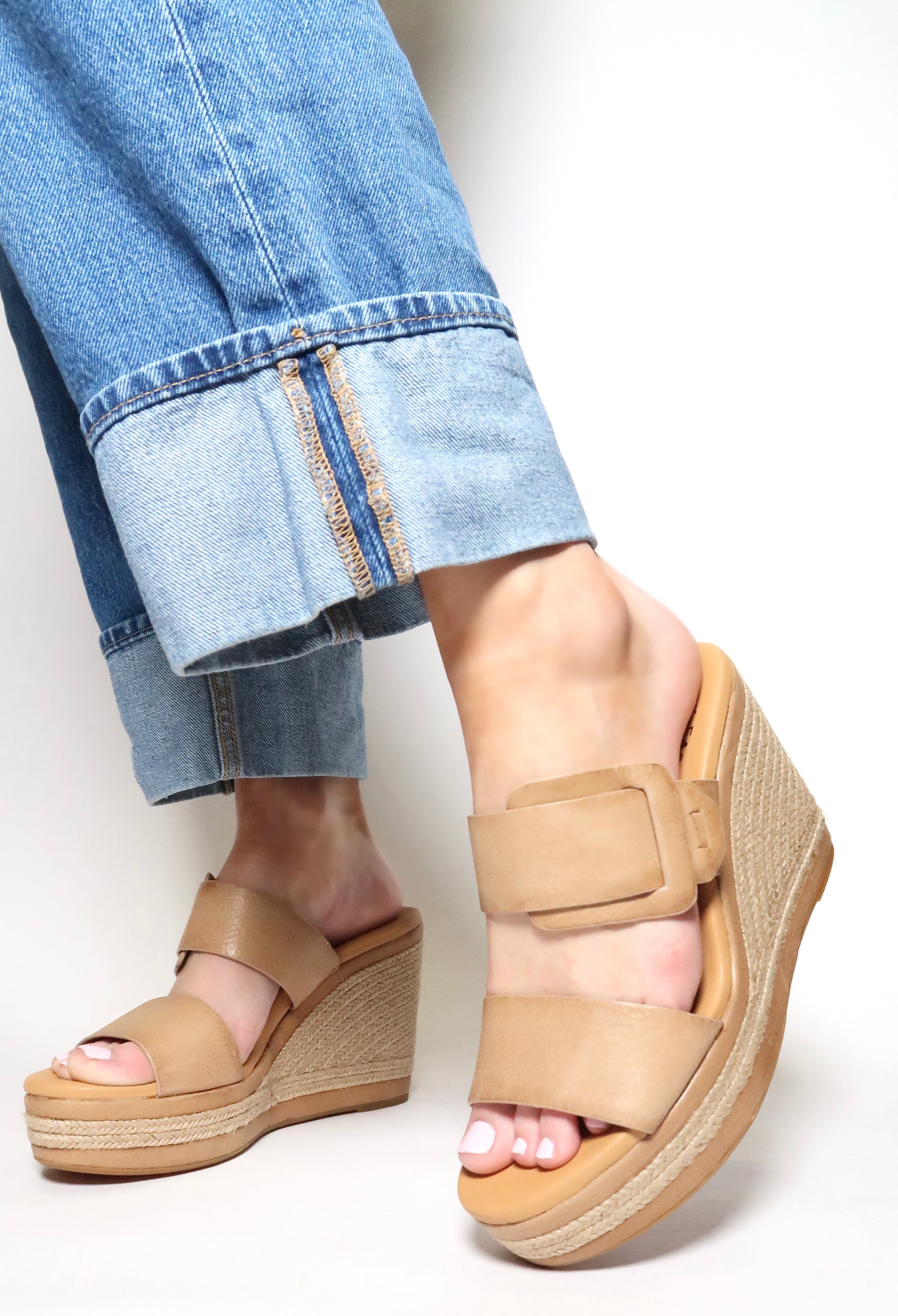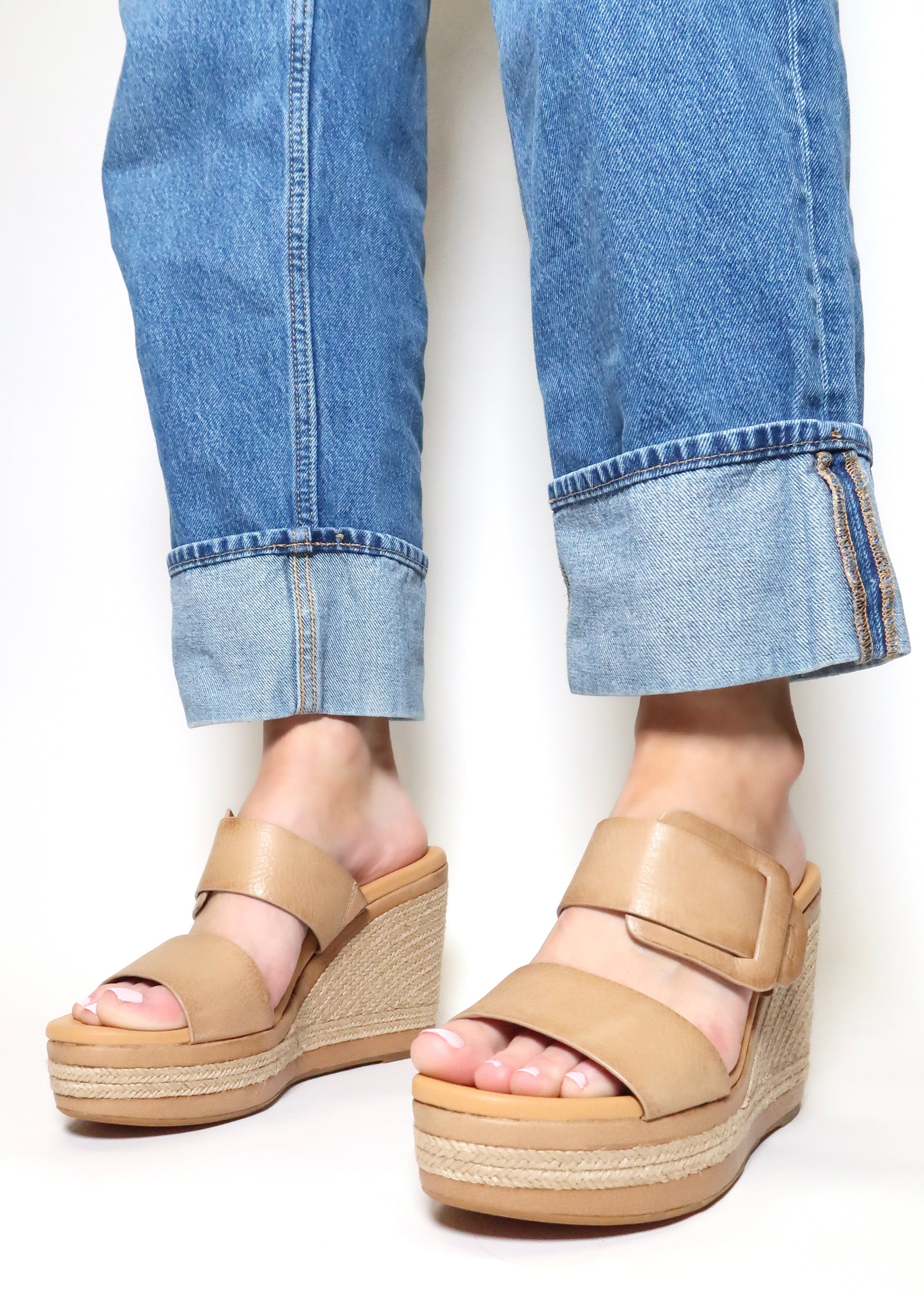 - High-Traction lightweight rubber outsole with a jute wrapped wedge and platform