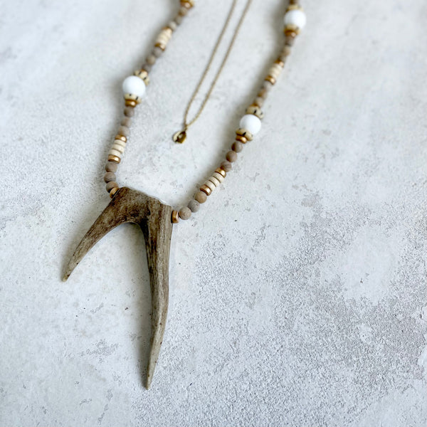 L Rae-Deer Fork & Neutral Wood Bead necklace
