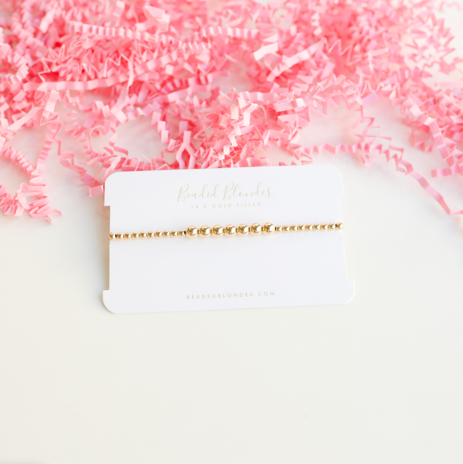 Material: 14 K gold filled beads and durable elastic string so perfect for everyday wear! Sweat proof, water proof and tarnish free!
