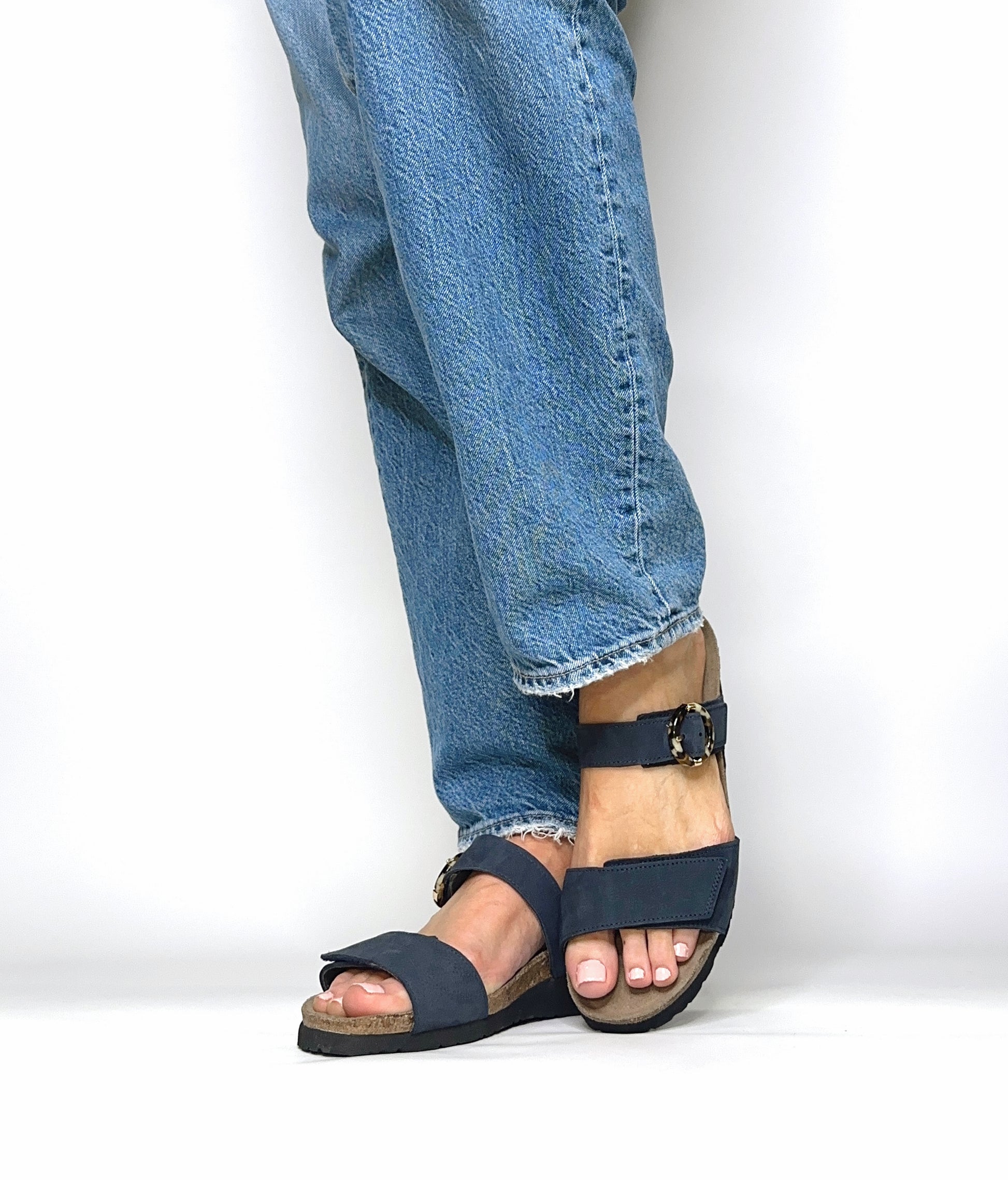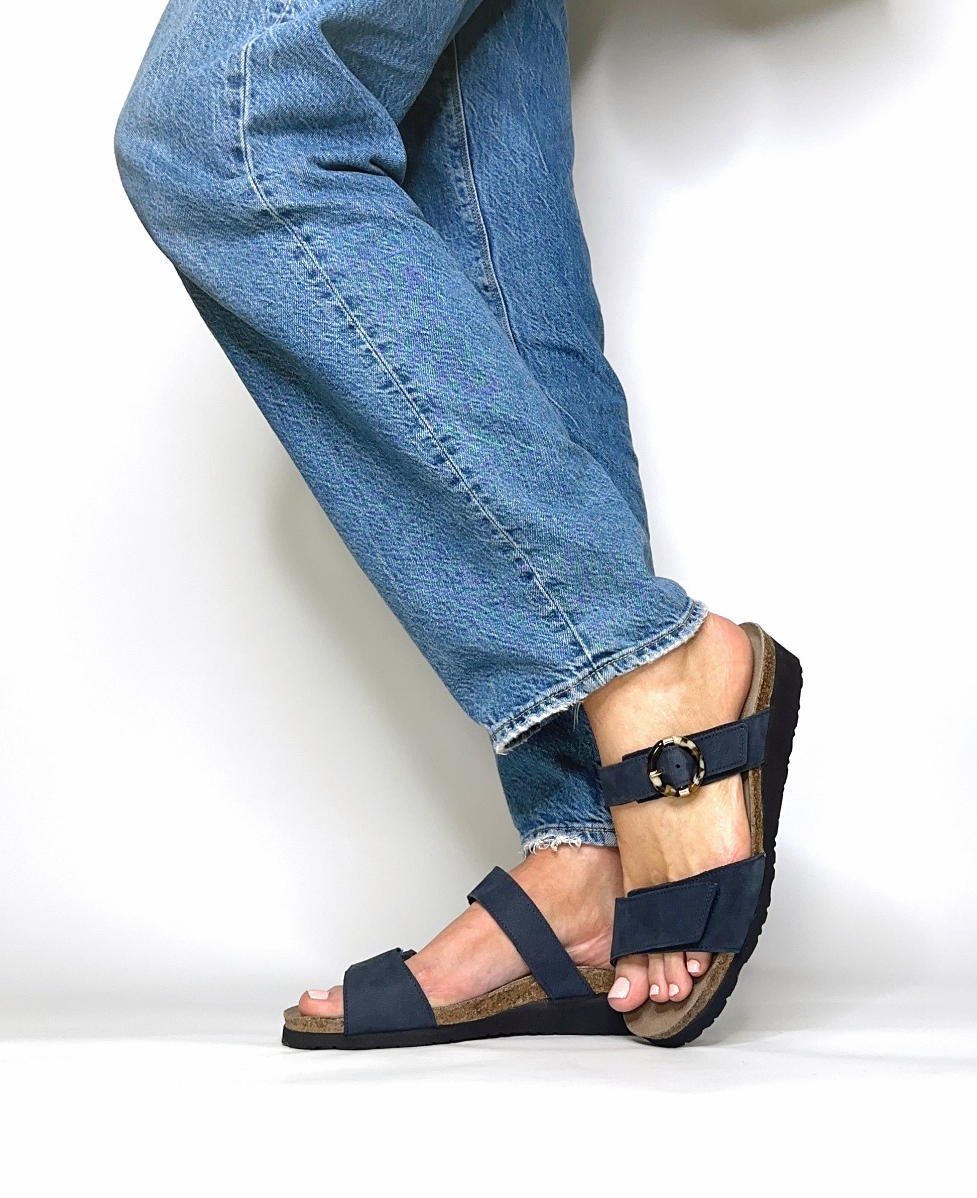 | Anabel is an effortlessly elegant sandal with buckle accent on its strap. The Anabel features an open back to slip on with ease. Naot's anatomic cork & latex footbed is wrapped in a pampering suede and molds to the shape of the foot with wear. |