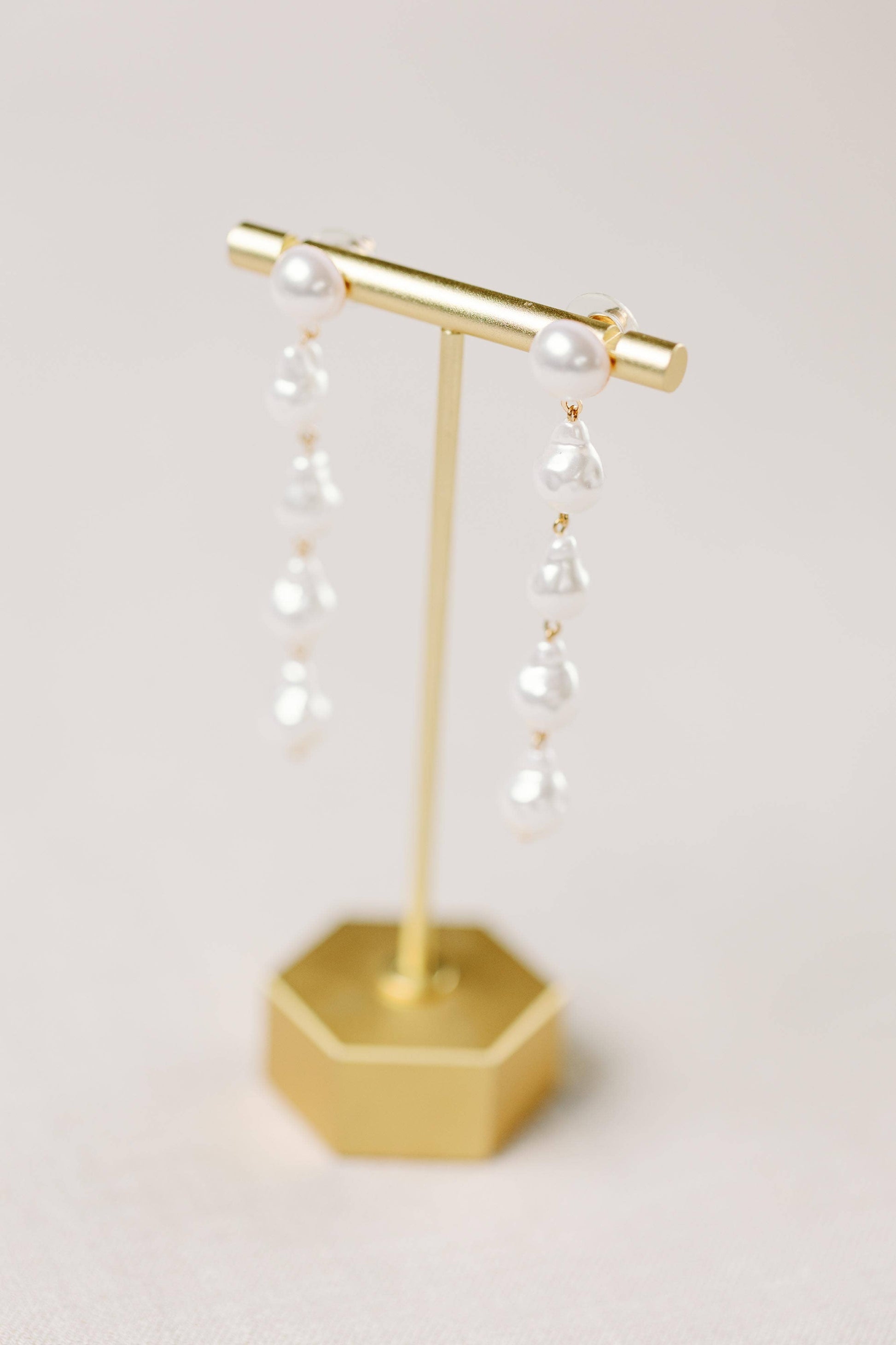 Did I happen to mention we are absolutely in LOVE with pearls! These new cascading pearl drops create a distinct 'old Florida' and Palm Beach glam look! These are very lightweight, and they match EVERYTHING! We love pairing them with headbands and a tunic for an easy summer look!