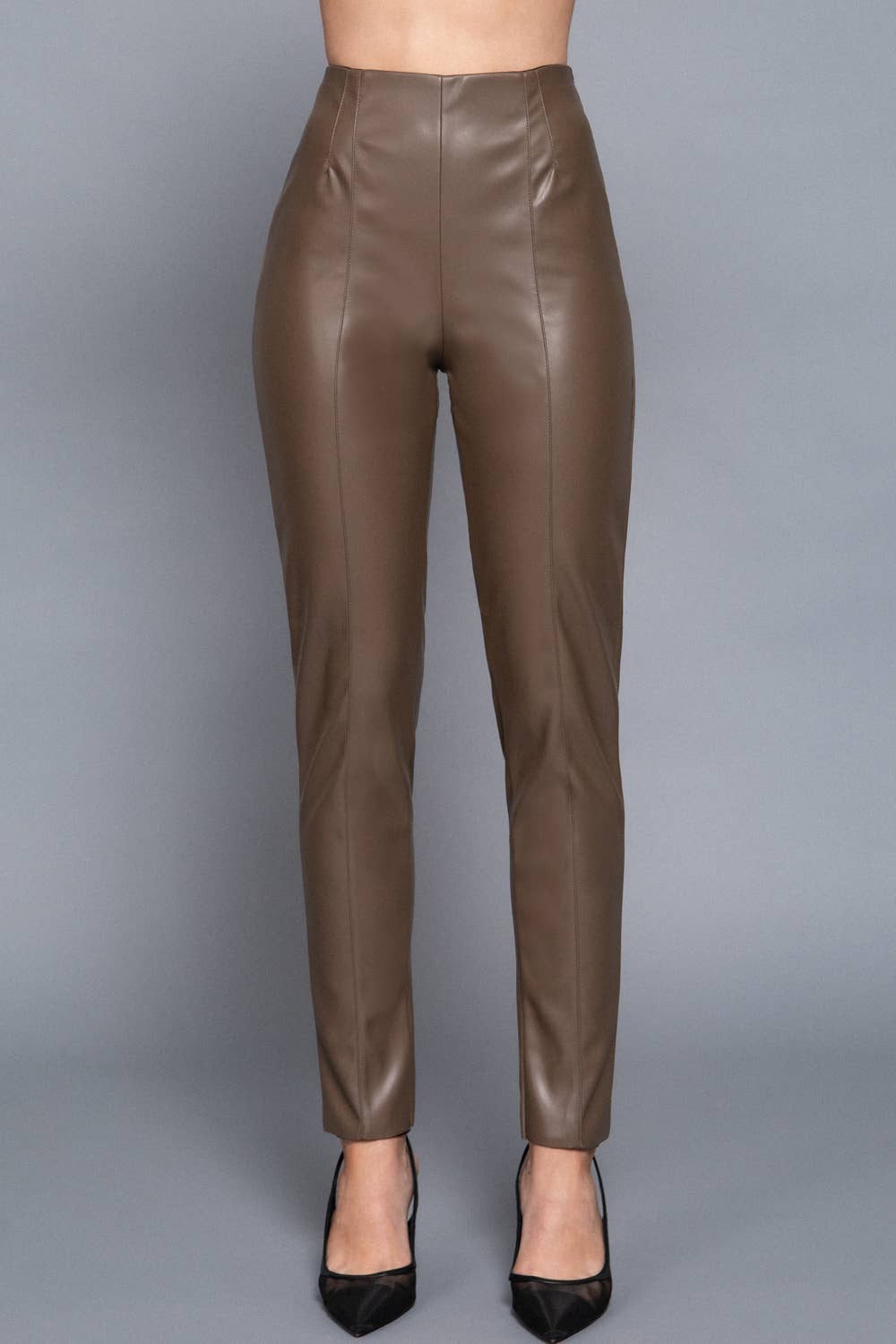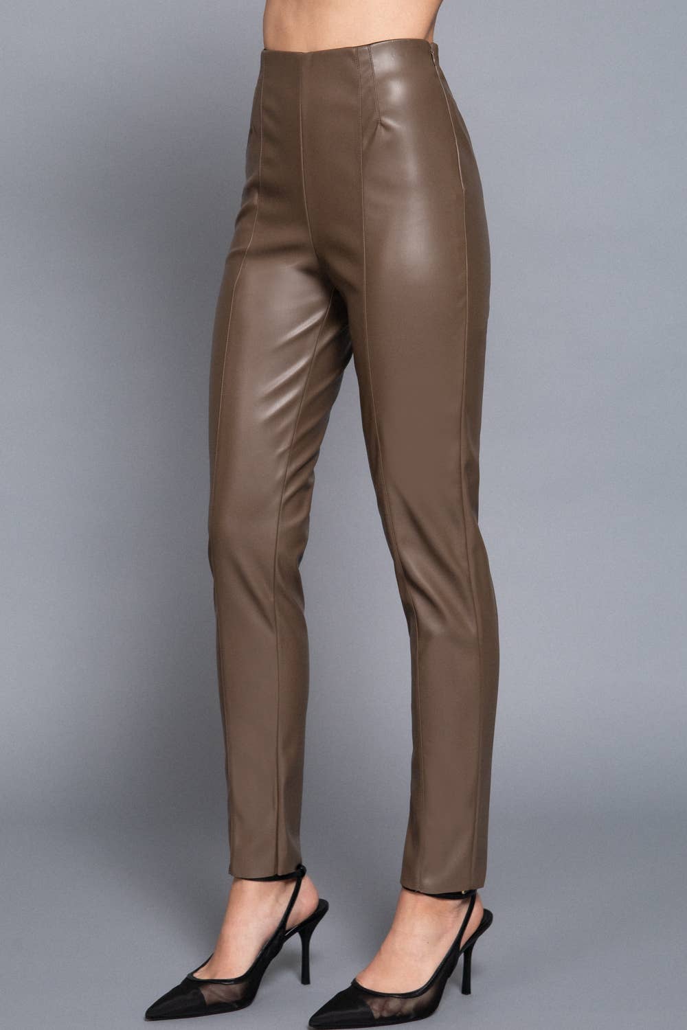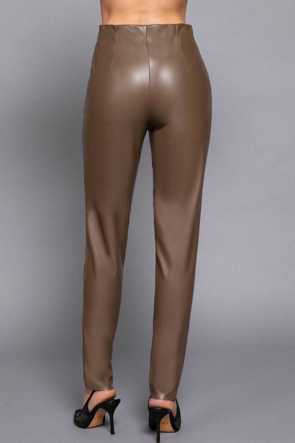 ELASTIC WAIST BAND SIDE ZIPPER FAUX LEATHER LEGGINGS
