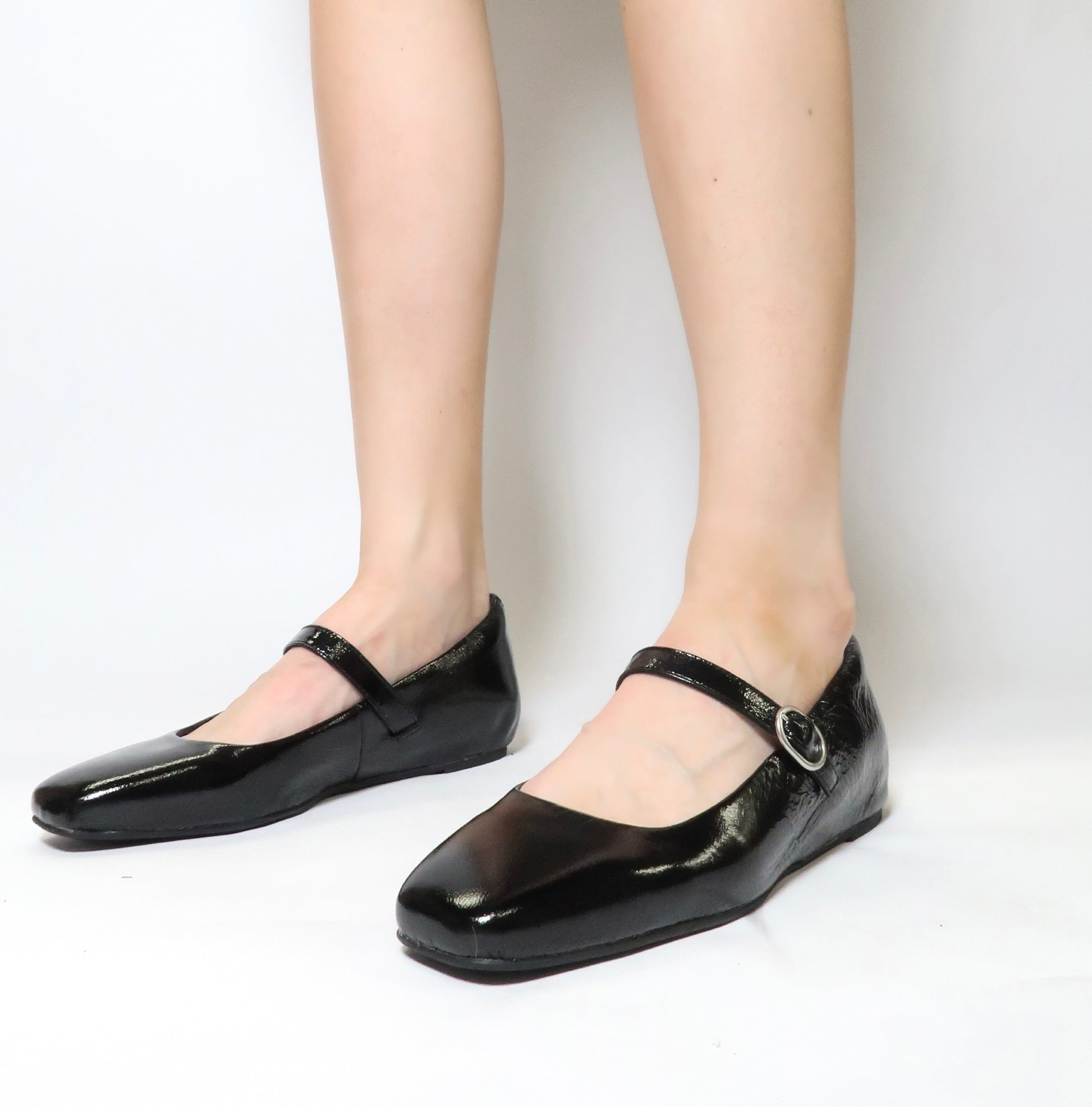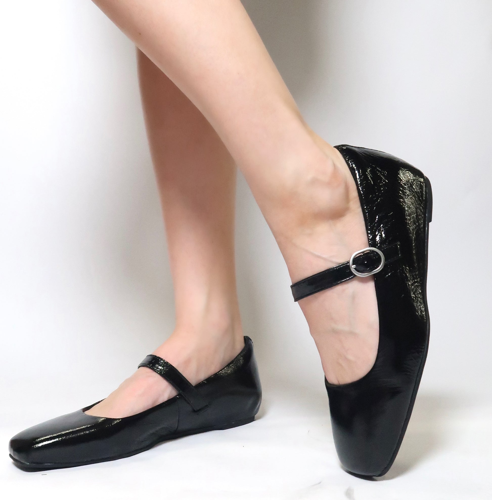 - Offered in crinkle patent leather