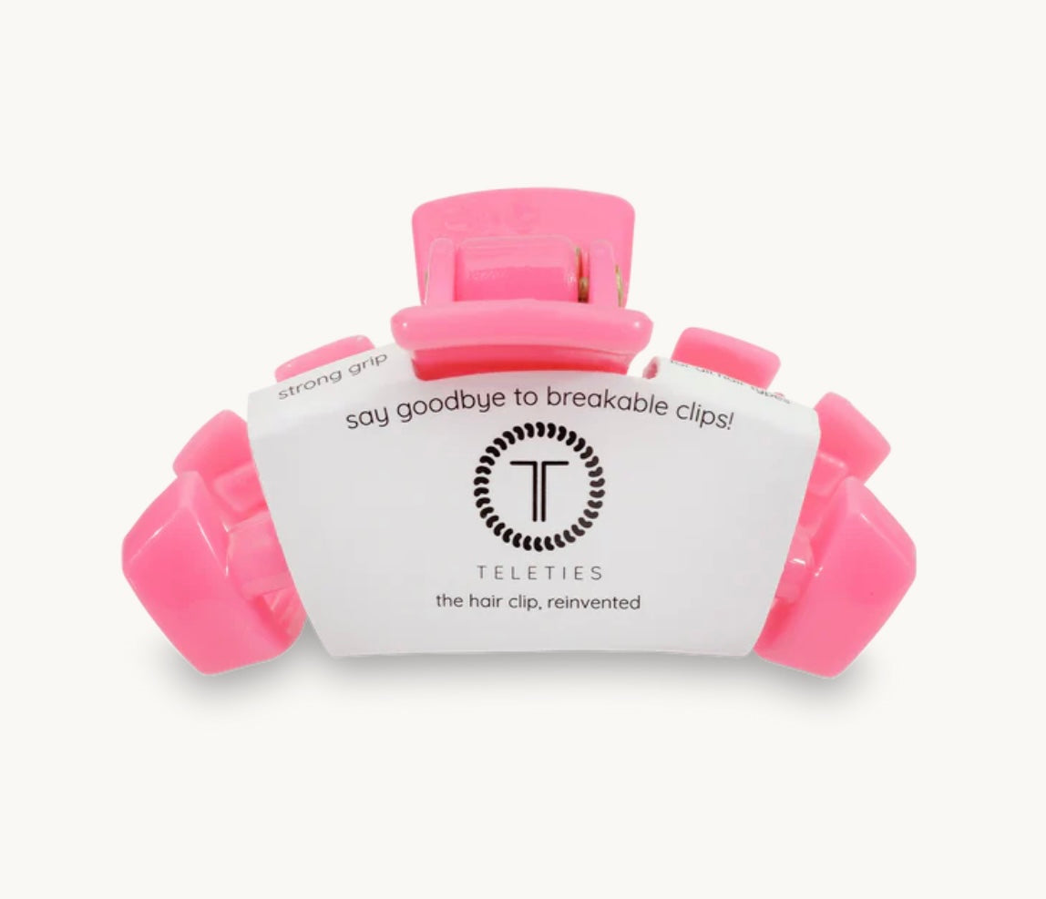 Say goodbye to breakable clips! We have perfected the hair tie and now have re-invented the clip. Each clip has bendable teeth that take back to shape, they work on all hair types and have a strong hold. Hold your hair and enhance your style with the new TELETIES Clip!