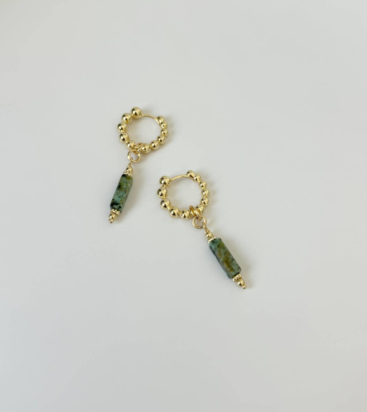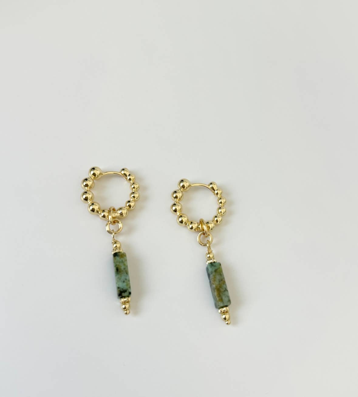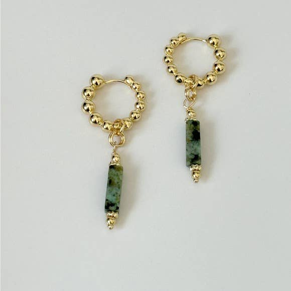 14K Gold Filled Hoop Earrings adorned with beautiful African Turquoise gemstone pendants