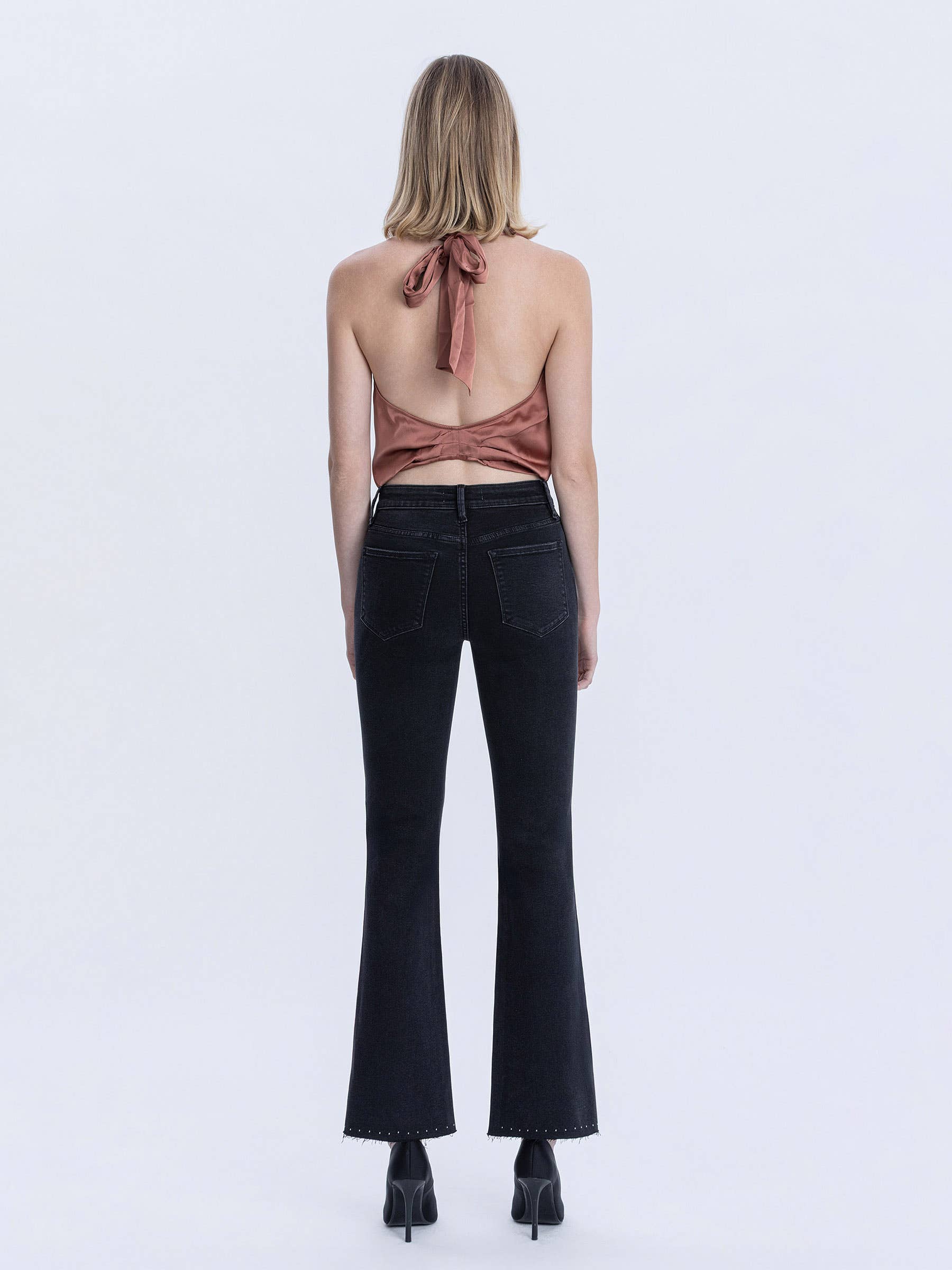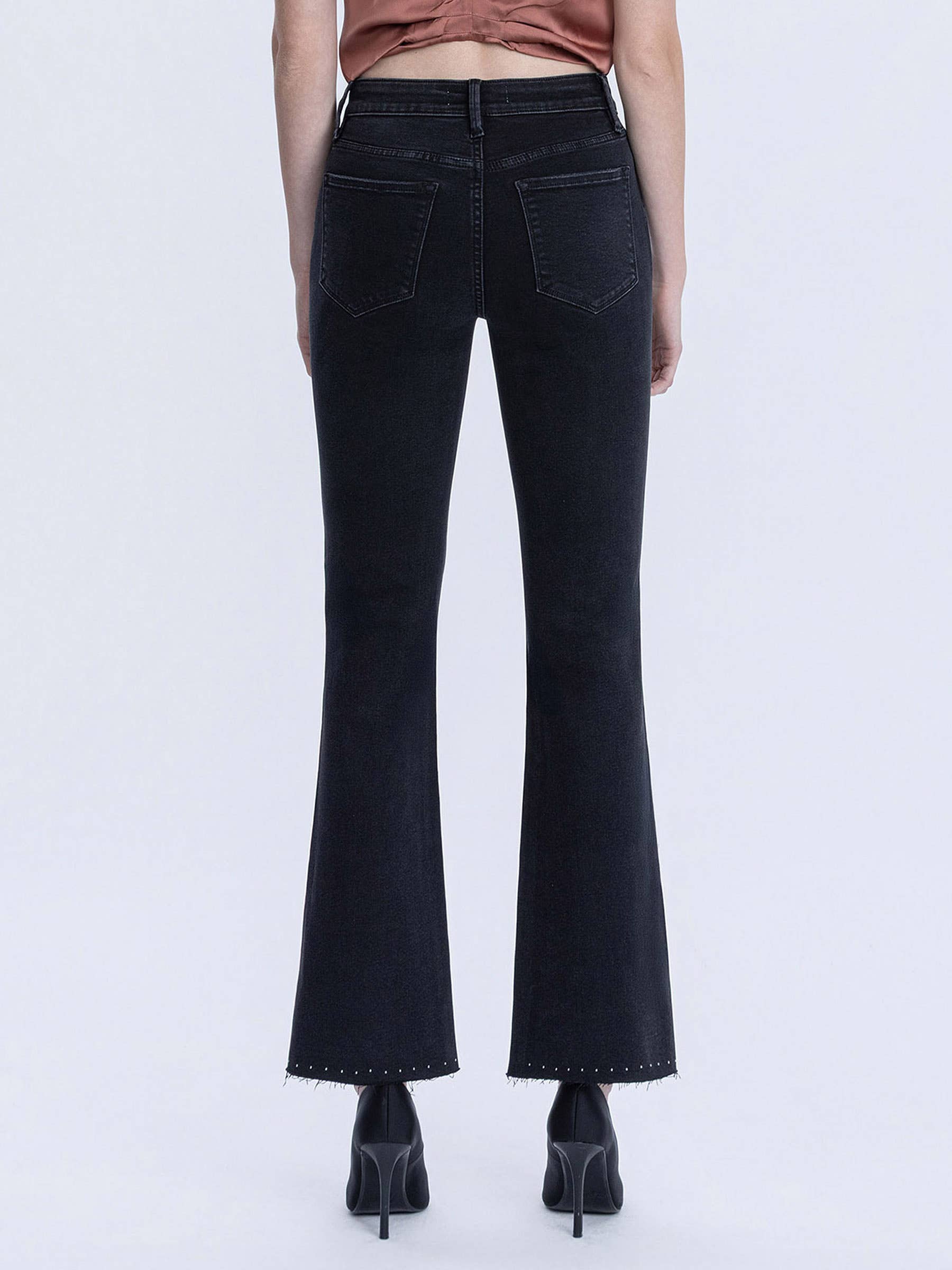 HIGH RISE PEARL EMBELLISHED BLACK BOOTCUT JEANS
