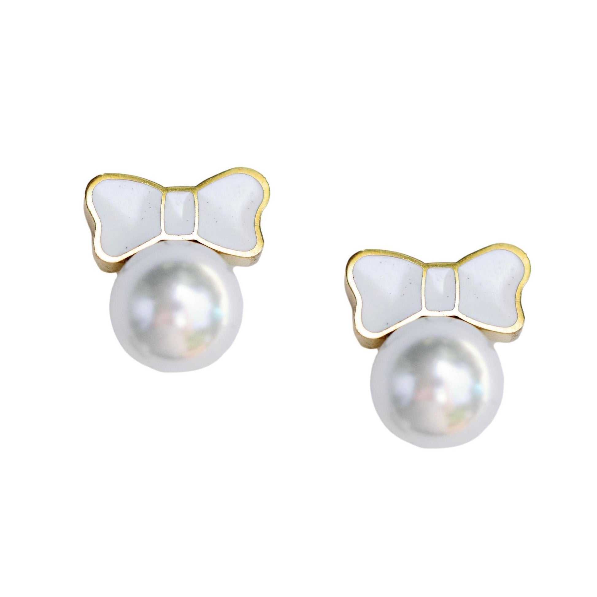 White Tuxedo Bow Mini Pearl Stud Earrings